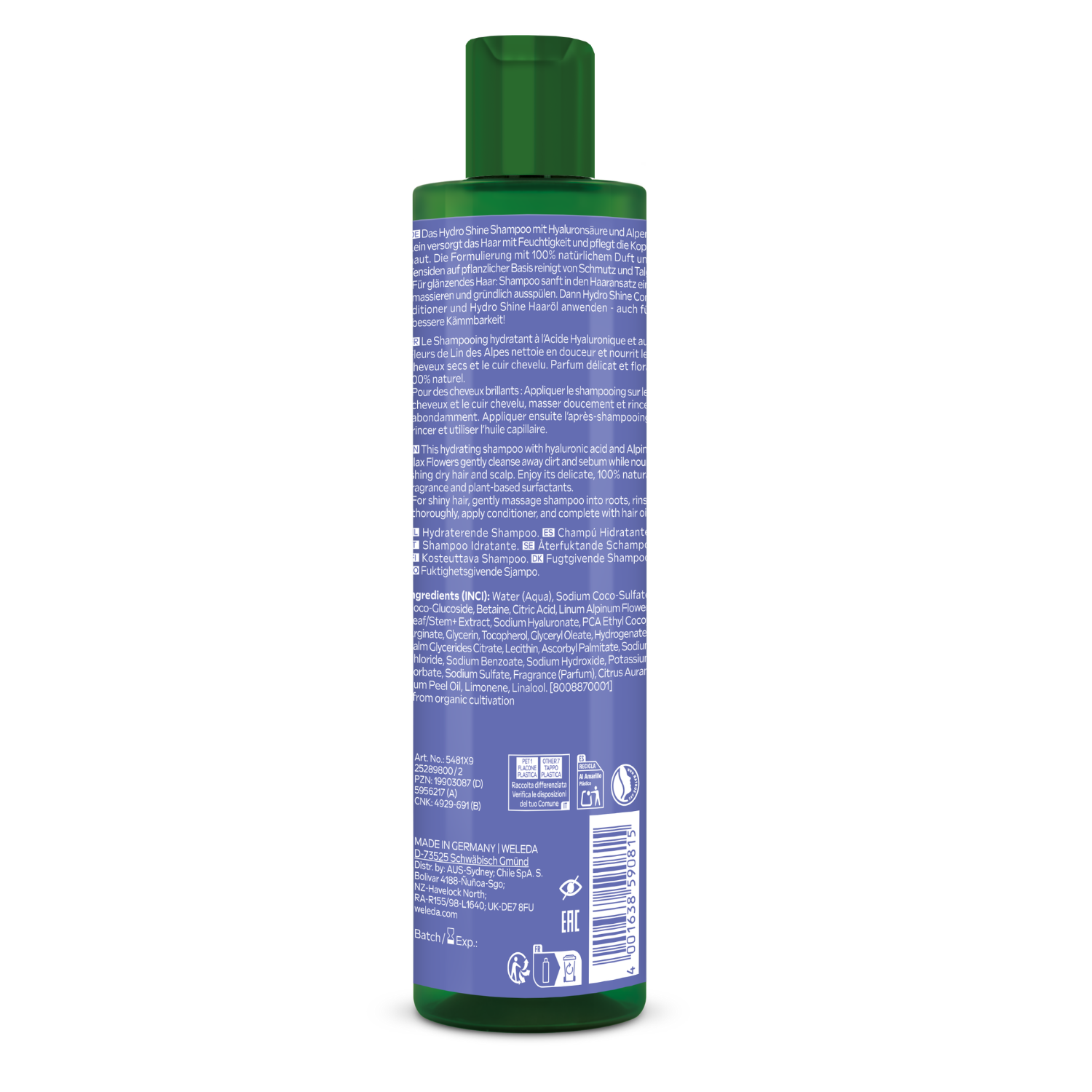 Acest sampon hidratant Weleda Hydro Shine curata delicat parul si scalpul, oferind hidratare si un plus de stralucire naturala. Formula cu ingrediente de origine vegetala ajuta la netezirea fibrei capilare, reduce aspectul tern si lasa parul suplu, matasos si mai usor de coafat. Este potrivit pentru utilizare frecventa, fara sa incarce firul de par.