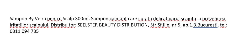 sampon By Veira Scalp Care – ingrijire delicata pentru scalp sensibil, reducerea mancarimii si electricitatii parului, protectie pentru culoarea parului