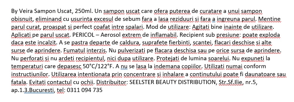 Șamponul uscat By Veira este soluția ideală pentru a menține părul curat, proaspăt și ușor de coafat între spălări. Formula sa eficientă oferă puterea de curățare a unui șampon clasic, eliminând excesul de sebum fără a încărca firul de păr sau a lăsa reziduuri vizibile. Îmbogățit cu amidon de orez și glicerină, acest șampon uscat lasă părul fin, mătăsos și revitalizat. Parfumul său fructat, cu note proaspete și florale, oferă o senzație plăcută de prospețime pe tot parcursul zilei.