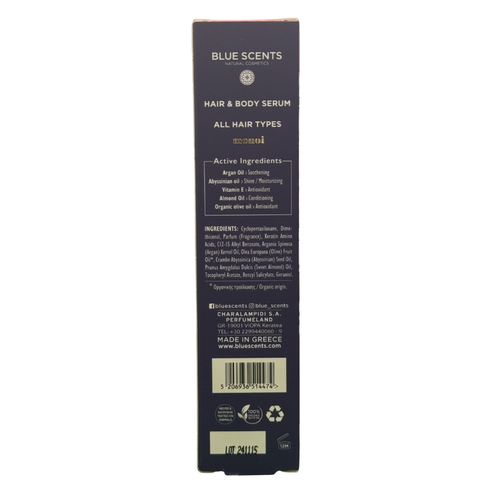 Blue Scents Monoi Hair & Body Serum este un ser multifunctional conceput pentru ingrijirea completa a parului si pielii. Formula sa bogata combina uleiuri nutritive precum uleiul de argan, uleiul de Abyssinian si uleiul organic de masline, alaturi de vitamina E, pentru hidratare intensa si protectie impotriva factorilor externi.