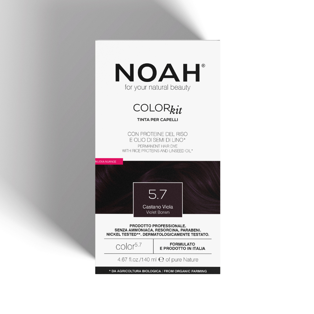 Descoperă frumusețea naturală și protecția delicată cu vopseaua de păr Noah Șaten violet 5.7. Formula sa profesională, fără amoniac, parabeni, siliconi și rezorcină, oferă o colorare intensă și de durată, cu acoperire excelentă a firelor albe, încă de la prima aplicare.