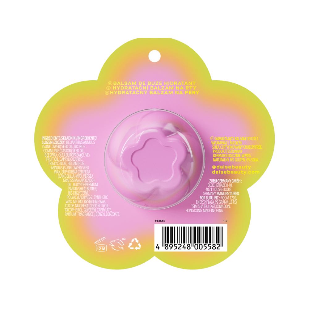 Daise Balsam de buze hidratant 8h Watermelon Crush, 7 g este un balsam de buze cu formula naturala, creat pentru a oferi hidratare intensa si confort de lunga durata. Imbogatit cu vitamina E, unt de shea si uleiuri vegetale hranitoare, acest balsam mentine buzele moi, netede si catifelate timp de pana la 8 ore. Aroma subtila de pepene verde ofera o experienta placuta la fiecare aplicare.