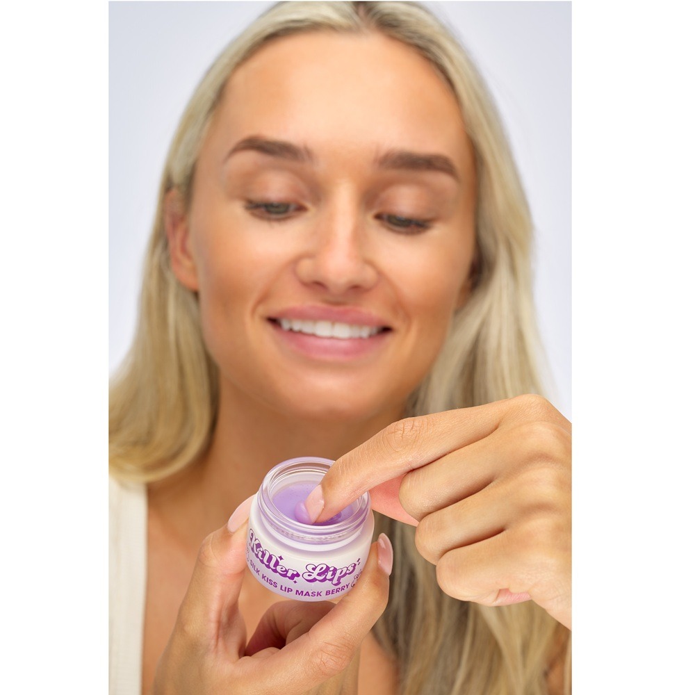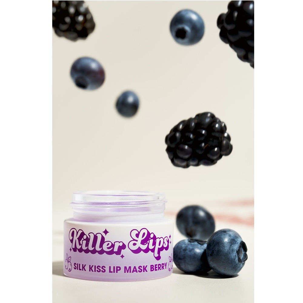 Killer Lips Silk Kiss Lip Mask – Berry este tratamentul perfect pentru buze uscate și deshidratate, oferind hidratare intensă și regenerare pe timpul nopții. Formula sa luxoasă, îmbogățită cu ulei de cocos, aloe vera și vitamina E, ajută la refacerea buzelor, lăsându-le moi, netede și catifelate. Textura ușoară și non-grasă se aplică uniform și nu lasă reziduuri, iar aroma dulce de fructe de pădure transformă rutina de îngrijire într-un moment de răsfăț. Dimineața, buzele sunt vizibil revitalizate și hidratate.