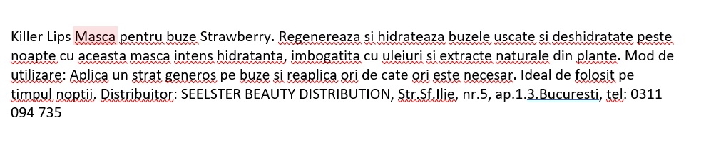 • Mască pentru buze regeneratoare cu aromă de căpșuni;