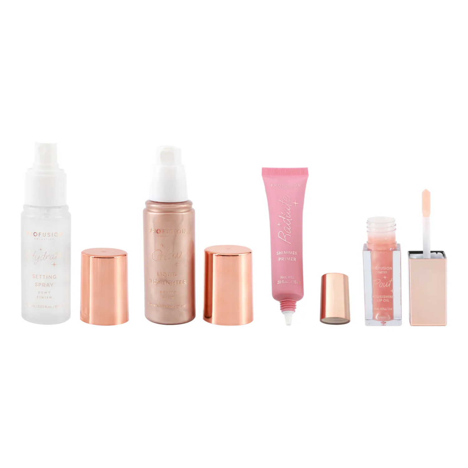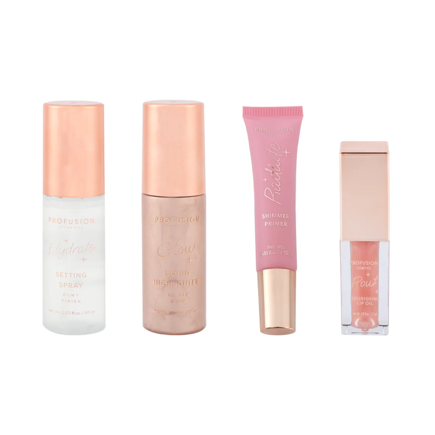 De ce să strălucești doar pentru un moment, când poți să radiezi întreaga zi? Setul Glow Icons este ghidul tău pentru un glow natural și radiant, cu patru produse esențiale care facilitează rutina de machiaj și hidratarea pielii.