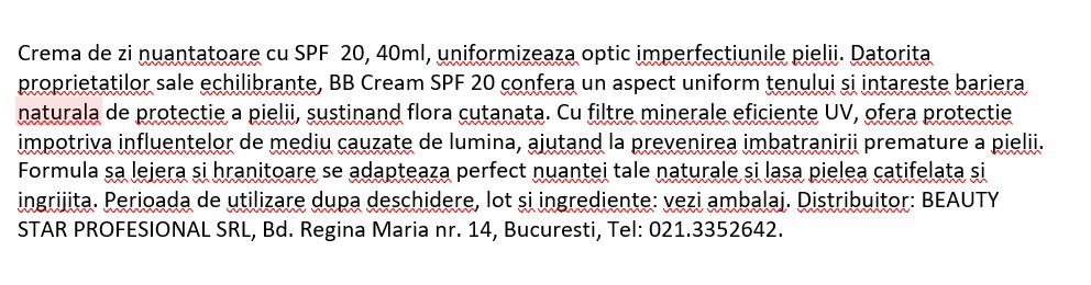 • Cremă BB nuanțatoare cu SPF 20;