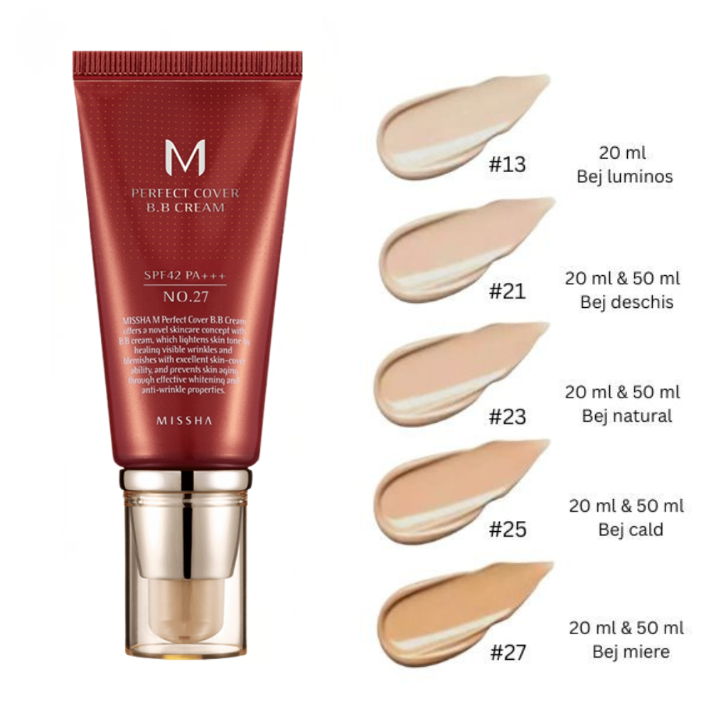 Missha BB cream acopera imperfectiunile, confera stralucire, echilibreaza tonul pielii si o intinereste. Mentine tenul hidratat si catifelat, datorita continutului de ceramide, acid hialuronic si Gatuline RC (substanta activa anti-aging derivata din mugurii de fag). Acopera petele, cearcanele si zonele cu decolorare, estompeaza liniile fine si roseata.