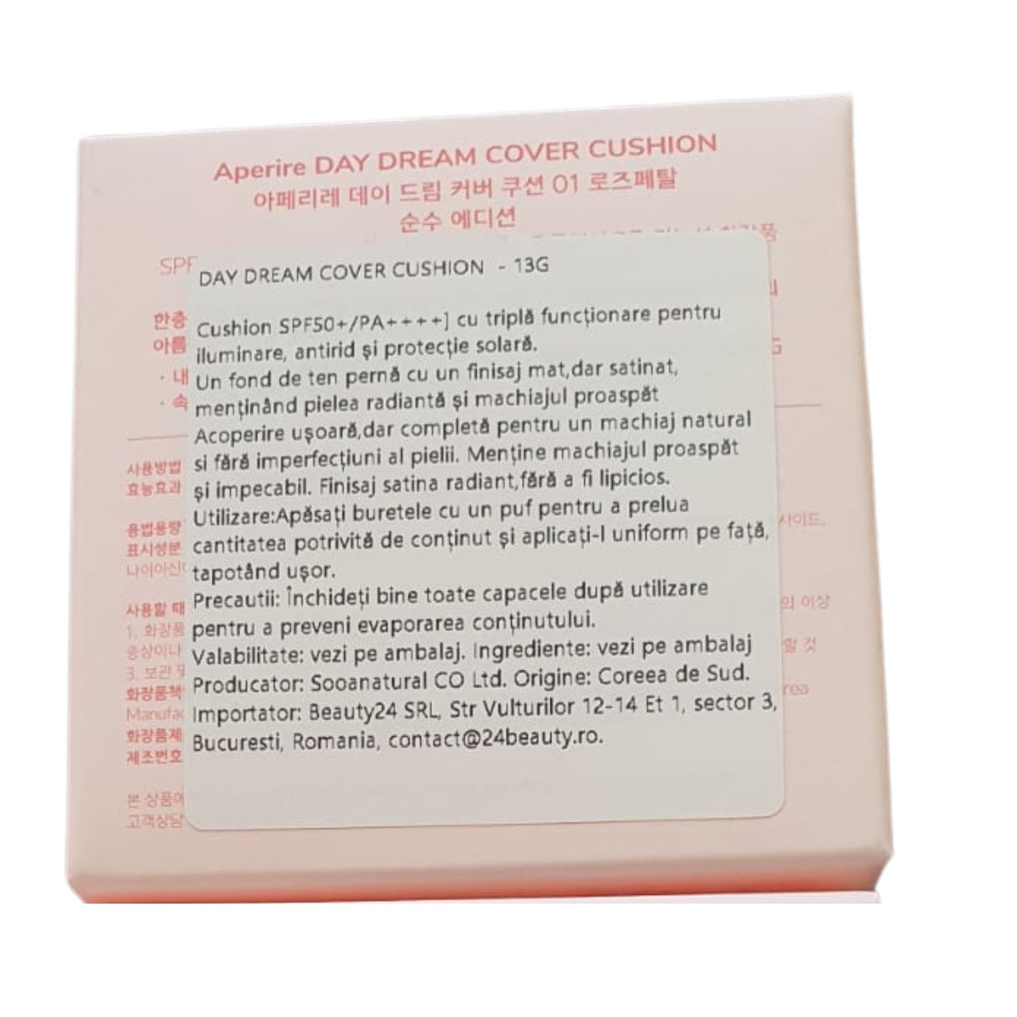 Aperire Day Dream Cover Cushion este un cushion bestseller cu SPF 50+ PA++++, creat special pentru tenul mixt, gras, acneic sau cu imperfecțiuni. Ofera acoperire eficienta si uniforma, cu efect de blur pentru pori si linii fine, fara sa incarce tenul. Textura usoara, semi-satinata, asigura un finish mat natural si un aspect proaspat pe tot parcursul zilei. Ideal pentru un look flawless, rezistent si confortabil, chiar si in conditii de exces de sebum.