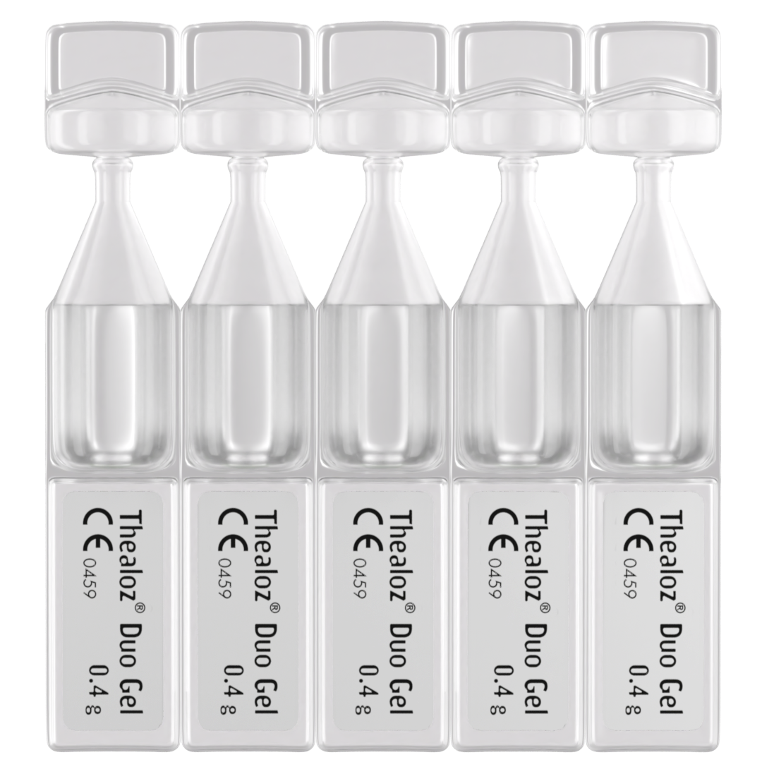 THEALOZ DUO GEL este indicat pentru protejarea, hidratarea și lubrifierea ochiului în tratamentul sindromului de ochi uscat moderat până la sever.