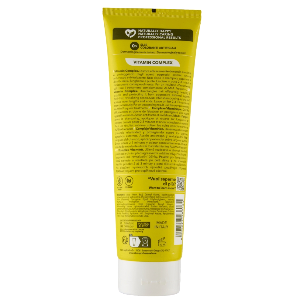 Balsamul Alama pentru utilizare frecventa este formulat pentru a descurca rapid parul, a-i reda elasticitatea si a-l proteja impotriva factorilor externi agresivi. Ofera o actiune anti-frizz si un efect revitalizant, fiind alegerea ideala pentru parul scurt sau mediu care necesita ingrijire usoara, dar eficienta, fara incarcare.