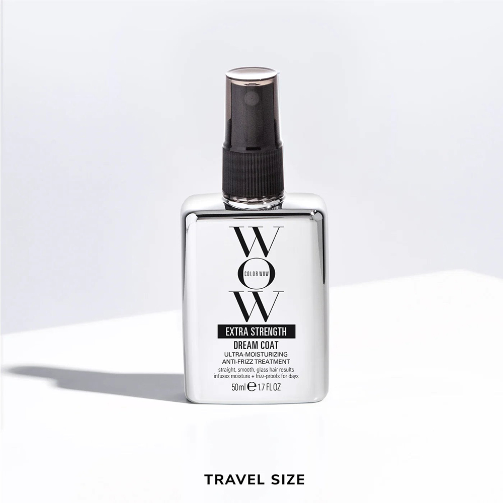 Color Wow Dream Coat Extra Strength (50 ml) este un spray lejer, activat de căldură, creat pentru părul uscat, poros sau creț, care ajută la netezire, luciu și rezistență la umiditate. Tehnologia de „impermeabilizare” formează un strat flexibil ce sigilează cuticula și ajută la menținerea efectului anti-frizz până la 3–4 spălări, fără să îngreuneze firul. Potrivit și pentru păr tratat cu keratină.