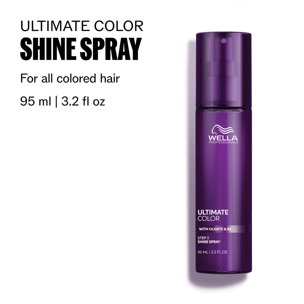Spray de stralucire pentru par vopsit cu Olivate & B5 Ultimate Color Shine Spray, 95 ml, Wella Professionals este un produs de finisare profesional, special formulat pentru a evidentia culoarea si a imbunatati aspectul parului vopsit. Textura usoara, fara clatire, actioneaza instant pentru a netezi fibra capilara, oferind un luciu intens si un efect vizibil de par sanatos si revitalizat. Formula avansata cu Olivate, derivat din ulei de masline, si provitamina B5 contribuie la hidratarea si catifelarea firului de par, fara a-l incarca. Ideal pentru utilizare dupa coafare, pentru un finish elegant si de lunga durata.