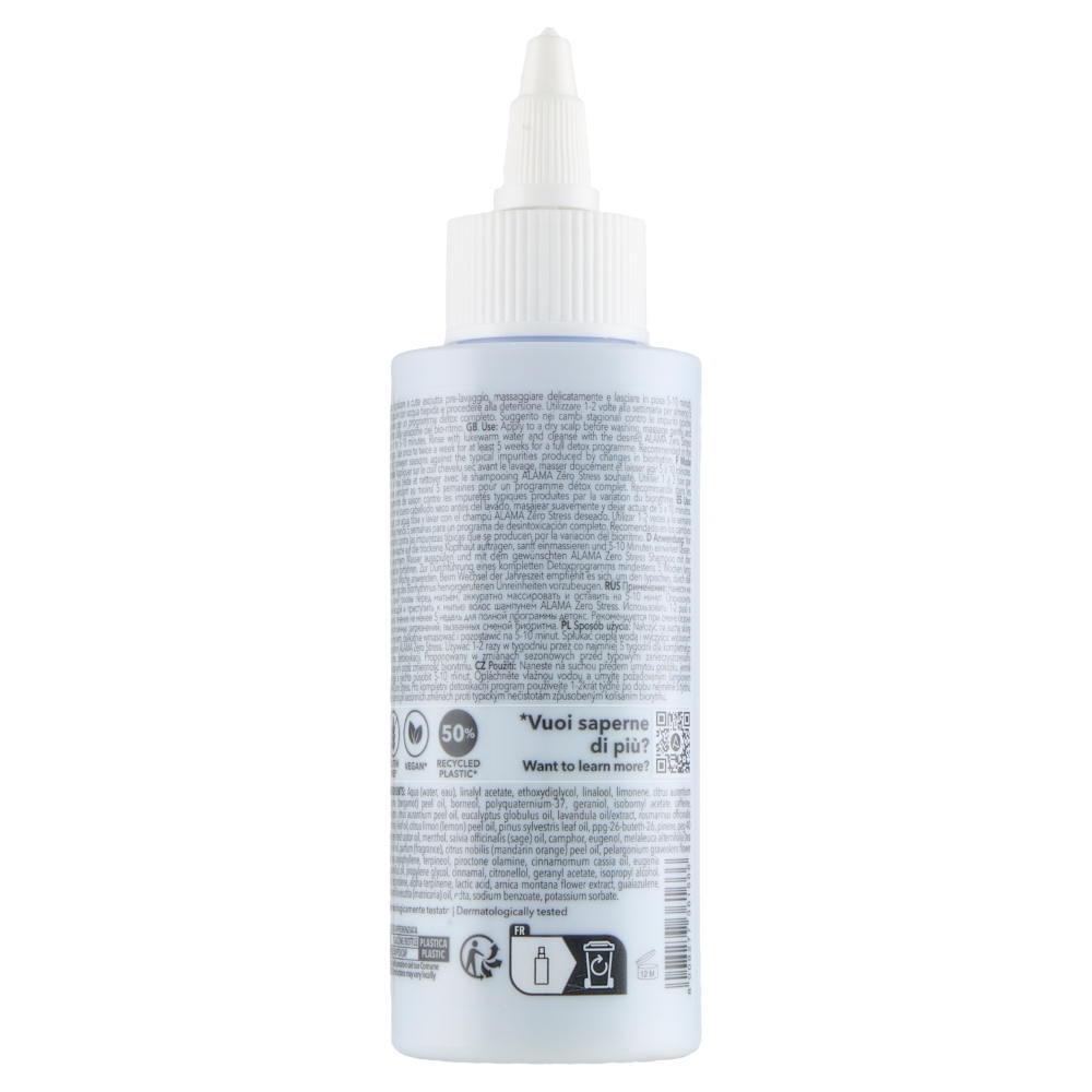 Tratamentul detox Zero Stress de la Alama este un produs profesional pre-spalare, creat pentru a purifica, calma si reechilibra pielea scalpului. Formula sa fluida, cu textura lejera si proaspata, actioneaza ca un detox intensiv, eliminand impuritatile, reducand stresul scalpului si imbunatatind confortul cutanat. Ideal in perioadele de tranzitie intre sezoane, ajuta la readucerea scalpului la echilibrul natural, oferind un start sanatos pentru rutina de ingrijire a parului.