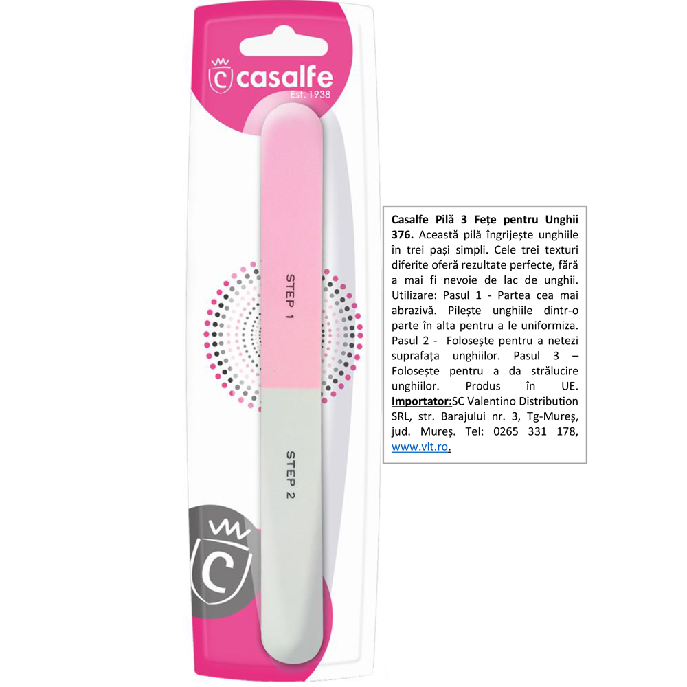 Pila de unghii Casalfe cu 3 fatete este un instrument versatil pentru îngrijirea și finisarea unghiilor, oferindu-le un aspect impecabil și o strălucire naturală. Cu trei suprafețe diferite, această pila de unghii buffer retușează unghiile într-un mod precis și eficient, conferindu-le finețe și un luciu de invidiat.