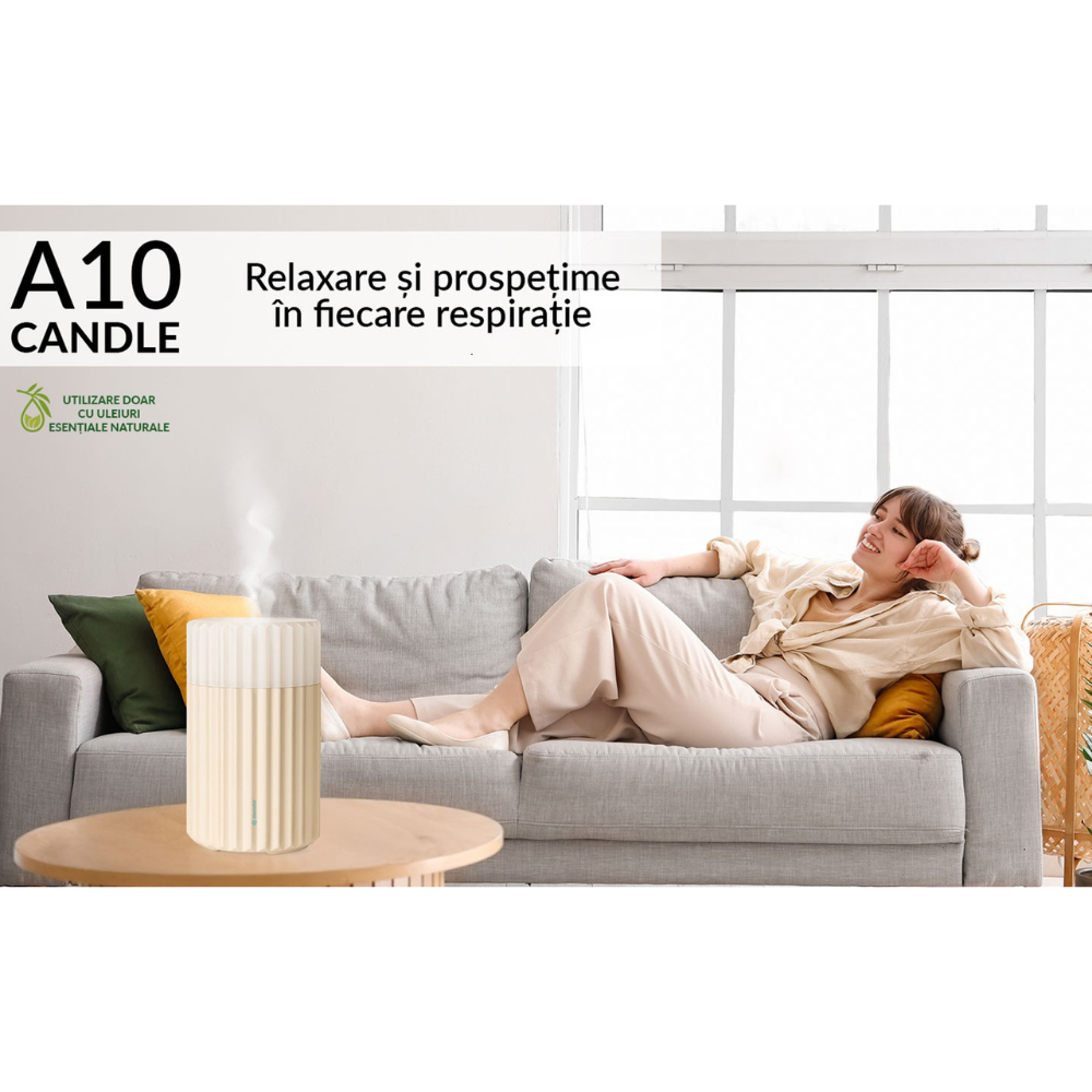 - Zgomot redus – funcționează silențios (≤30 dB), perfect pentru somn, yoga sau birou.