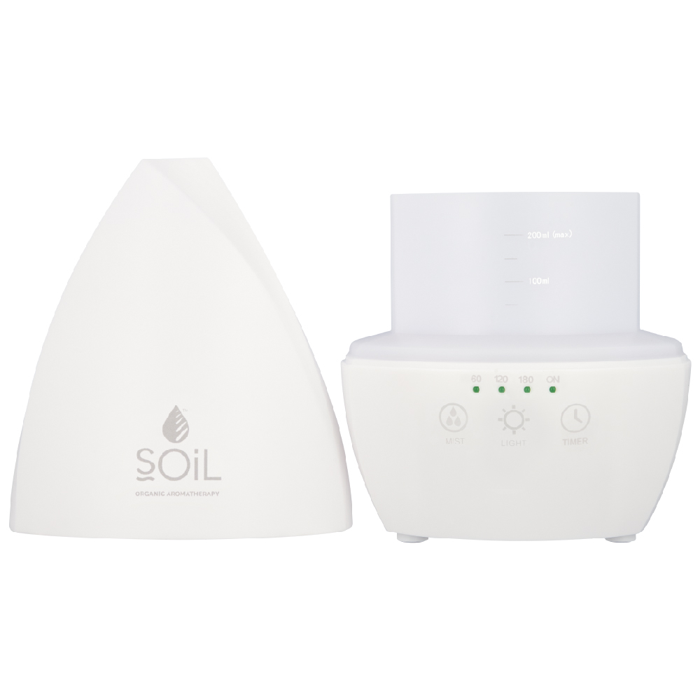 Difuzorul SOiL foloseste unde ultrasonice de inalta frecventa (1,7MHz) pentru a vaporiza instantaneu apa amestecata cu uleiuri esentiale, intr-un abur racoros, fin, umed si aromatic.