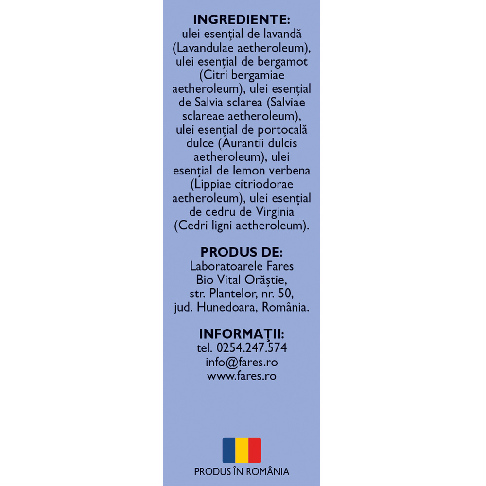 Ceaiul Noapte Bună de la Fares este un amestec de uleiuri esențiale naturale, creat pentru uz extern. Cu o combinație de 6 uleiuri esențiale, precum lavandă, bergamot și lămâie, acest produs este ideal pentru a crea o atmosferă relaxantă înainte de culcare.