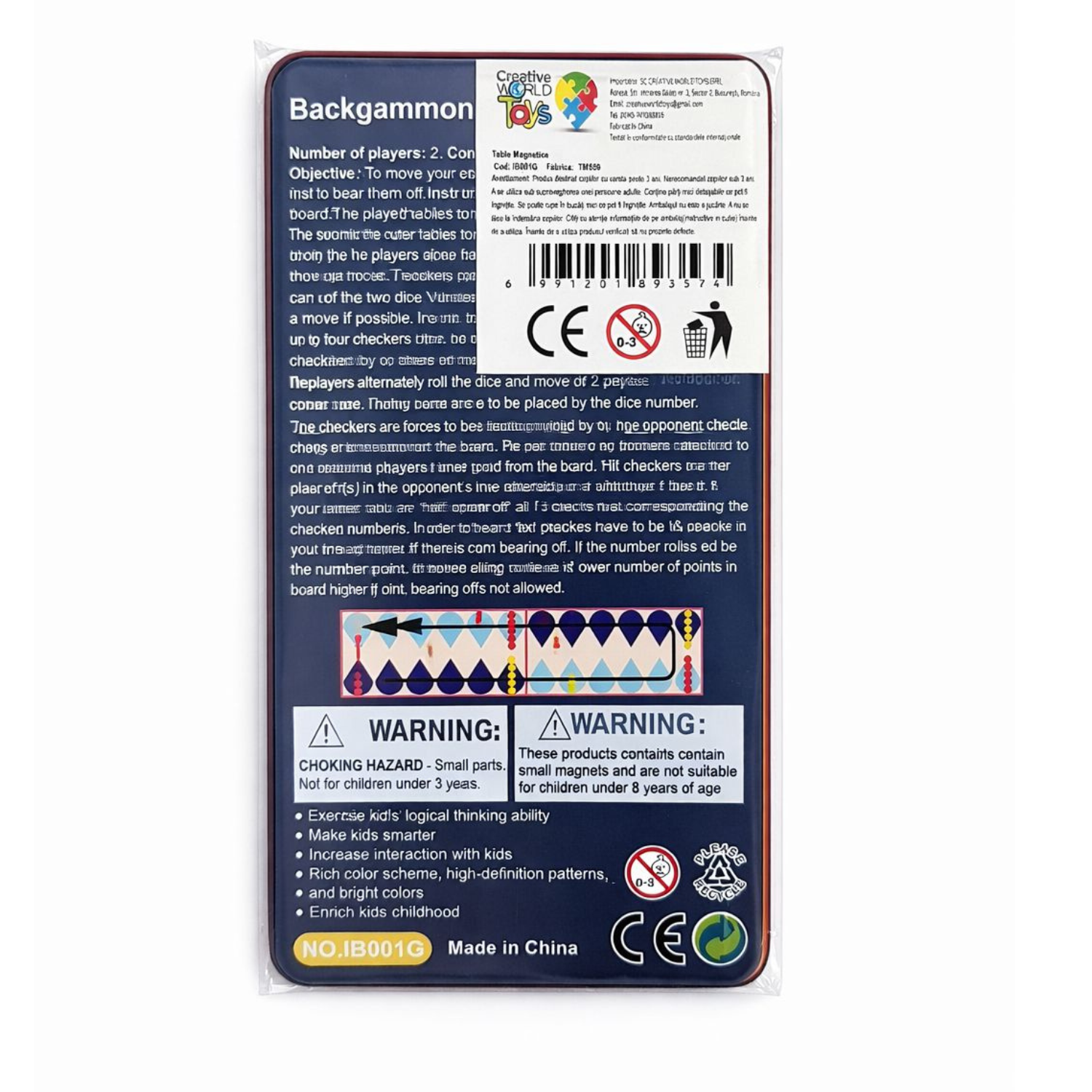 Joc clasic de backgammon în variantă compactă, cu piese magnetice, ideal pentru călătorii și timp liber. Tabla pliabilă și piesele magnetice asigură stabilitate în timpul jocului, fiind ușor de transportat și utilizat oriunde. Perfect pentru dezvoltarea gândirii strategice și a abilităților de planificare.