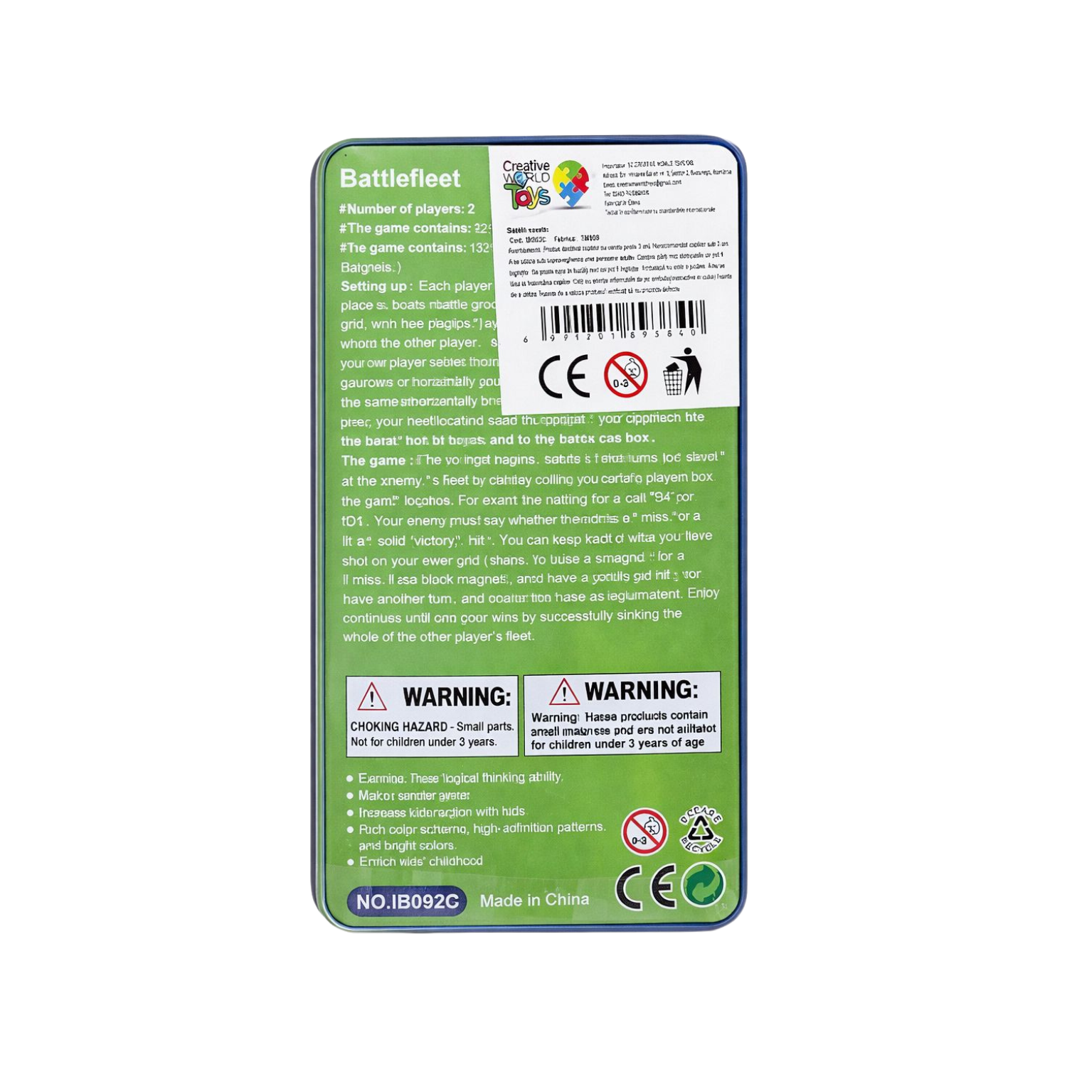 Joc clasic de strategie „Bătălia navală”, în variantă compactă cu piese magnetice. Ideal pentru călătorii și momente de distracție în familie. Tabla pliabilă și sistemul magnetic mențin piesele fixe, oferind o experiență de joc stabilă și practică oriunde.