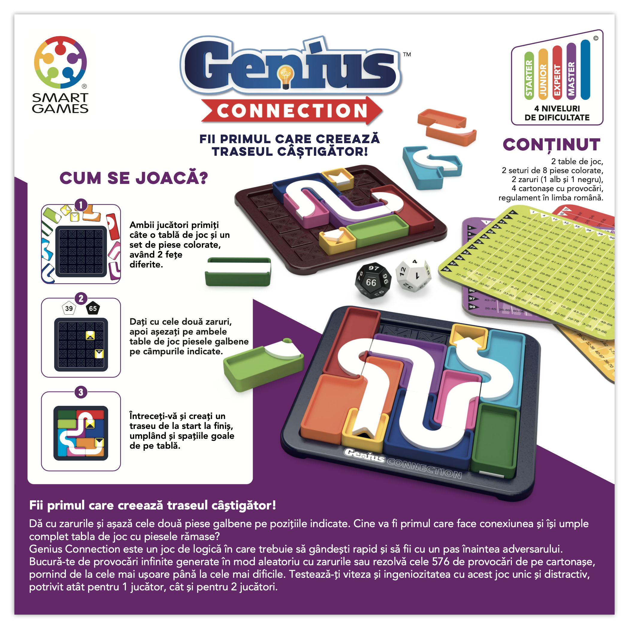 Smart Games - Genius Connection este un joc de logica inteligent si captivant, creat pentru a dezvolta gandirea analitica si abilitatea de planificare prin conectarea pieselor intr-o retea continua. Cu provocari cu dificultate progresiva si un design compact, jocul este ideal pentru activitati solo, acasa sau in calatorii. Include tabla de joc, piese colorate, cartonase cu provocari si regulament in limba romana, fiind o optiune excelenta pentru copii, adolescenti si adulti care iubesc puzzle-urile logice.