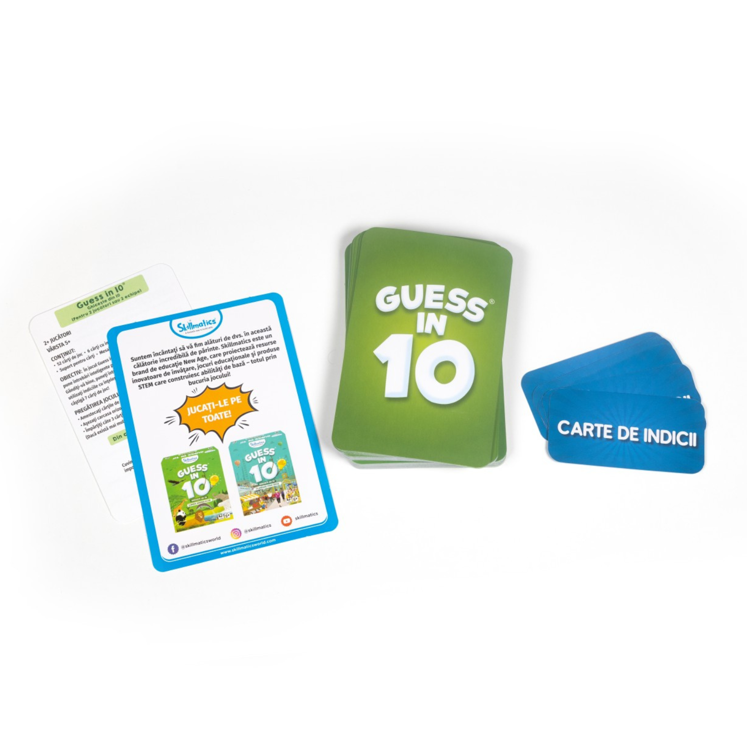 Descoperă lumea fascinantă a animalelor cu Jocul Ghid de recunoaștere al animalelor în limba română de la Spin Master! Acest joc interactiv este conceput pentru copii de peste 5 ani și le dezvoltă curiozitatea, imaginația și abilitățile de comunicare printr-o serie de întrebări inteligente. Cu peste 100 de animale de ghicit, fiecare carte de joc conține indicii și aluzii educative, transformând învățarea într-o activitate distractivă și captivantă. Câștigă primul jucător care reușește să adune 7 cărți!