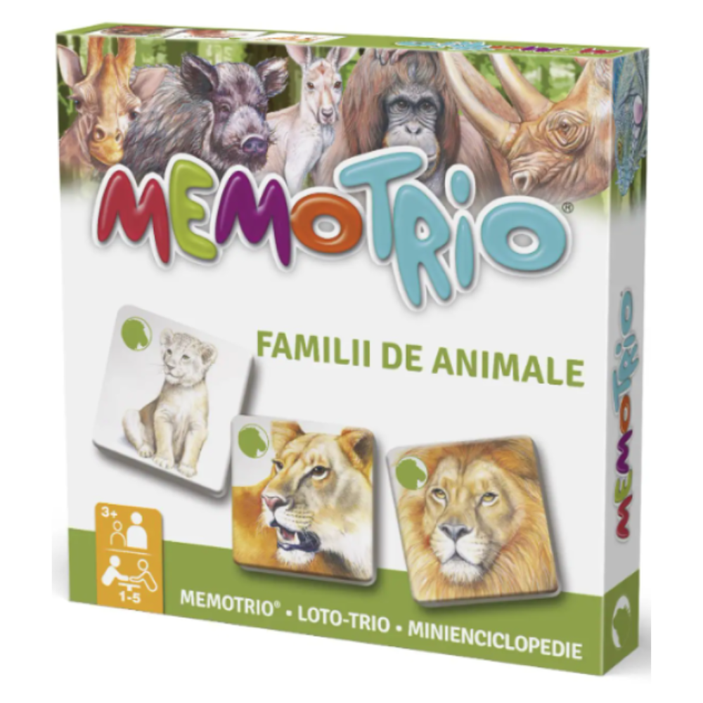 Memotrio Familii de Animale este un joc educativ inovativ care combina trei concepte esentiale pentru dezvoltarea copiilor: memo, loto si asociere logica. Conceput pentru copiii de 3 ani+, jocul stimuleaza atentia, memoria, vocabularul si gandirea analitica prin activitati atractive cu animale salbatice. Setul include cartonase rezistente, planse de joc si o minienciclopedie color cu ilustratii si informatii despre 12 animale, oferind o experienta educativa completa si interactiva. Cu 10 variante de joc, Memotrio pastreaza interesul copilului si incurajeaza invatarea prin joaca.