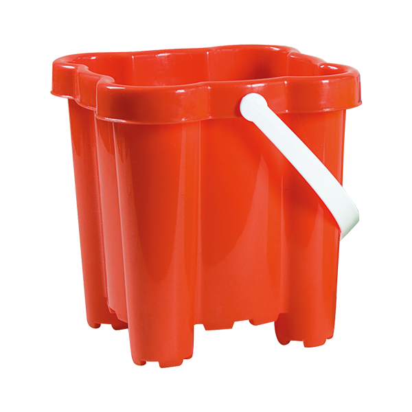 Umple găletușa cu nisip, presează ușor și răstoarnă pentru a obține o formă de castel bine definită. Se poate utiliza și cu apă, pietricele sau alte materiale naturale, sub supravegherea unui adult.