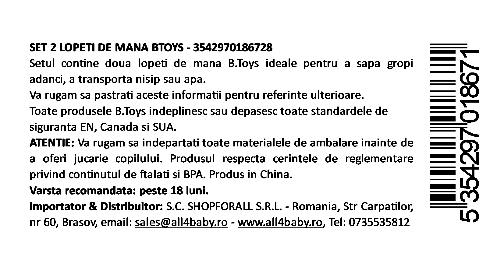 Joaca în nisip devine și mai distractivă și activă cu setul de 2 lopeți de mână de la B.Toys, special creat pentru copiii de peste 18 luni. Cu un design ergonomic și culori vesele, aceste unelte îi ajută pe cei mici să sape, să construiască și să transporte nisip cu ușurință, direct din mânuțele lor!