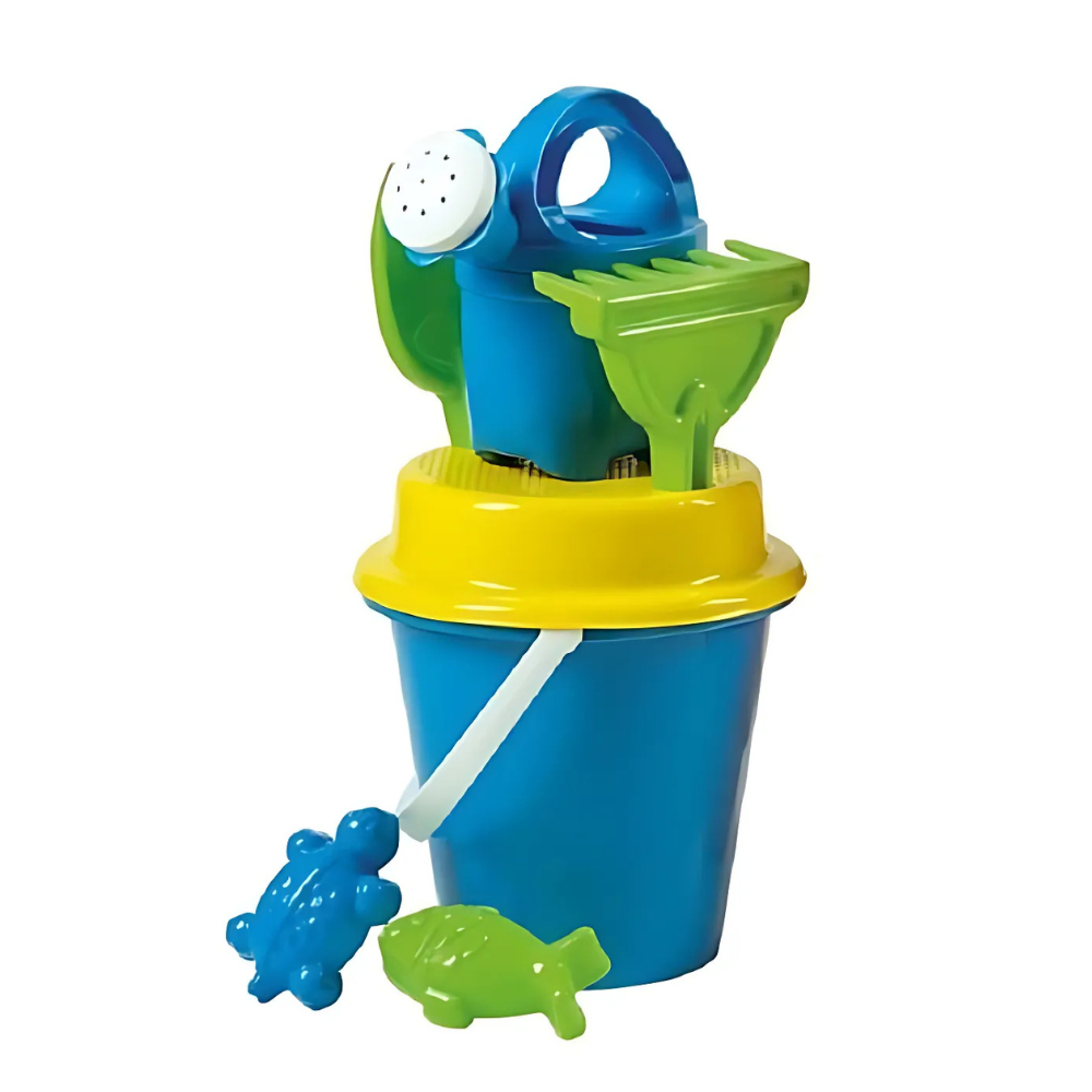 • Conținut pachet: 1 găleată, 1 stropitoare, 1 lopată, 1 greblă, 2 forme