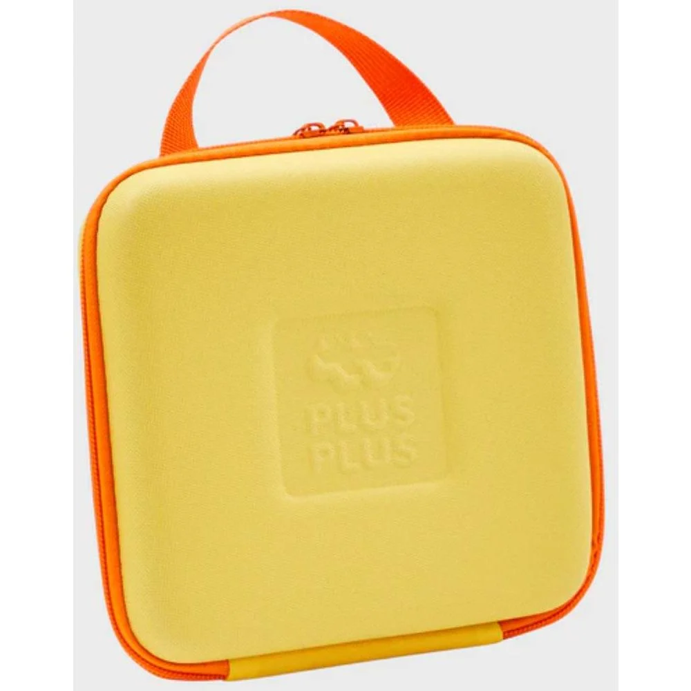 Set de construcție Plus-Plus BIG cu 15 piese mari, în culori variate, ambalat într-o geantă textilă galbenă cu fermoar. Ideal pentru joacă educativă, portabilă și sigură, destinat copiilor de la 1 an în sus.