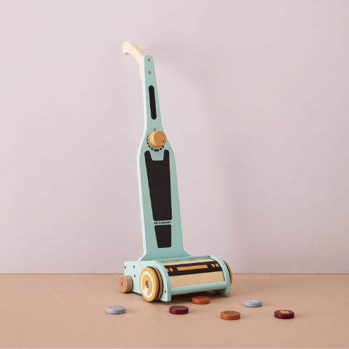Aspiratorul din lemn este o jucărie interactivă și educativă, concepută pentru a transforma treburile casnice într-o activitate distractivă. Cei mici pot „ajuta” părinții la curățenie, învățând prin joacă despre responsabilitate și cooperare.