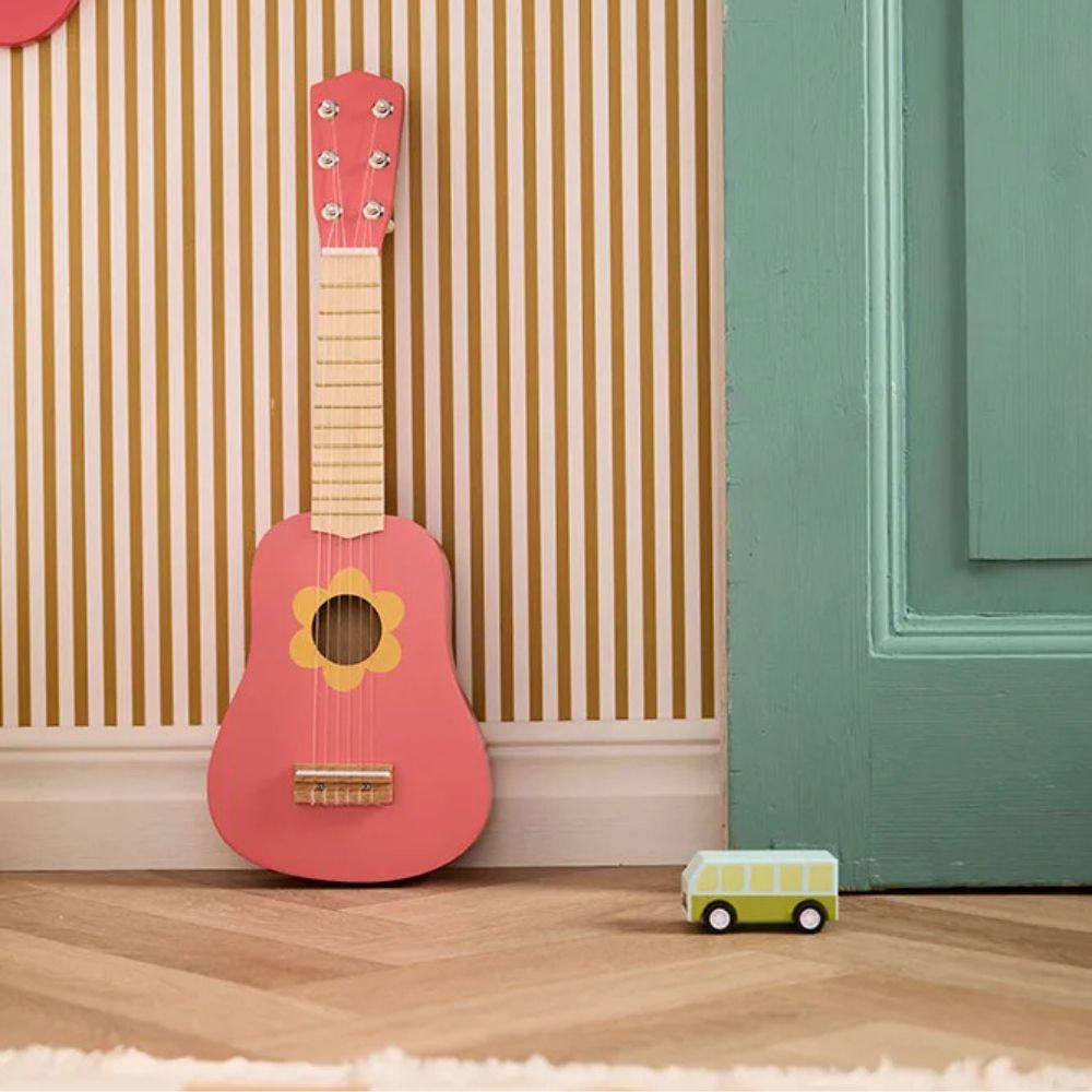 Chitara din lemn Flower Pink este alegerea perfectă pentru micii artiști care iubesc muzica. Cu un design colorat și delicat, jucăria îi încurajează pe copii să descopere ritmul, sunetul și bucuria interpretării.