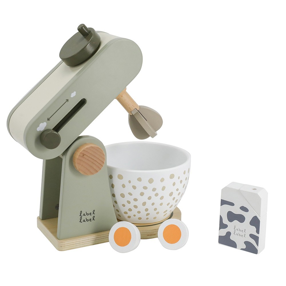 Realizat din lemn de calitate, mixerul are un design atractiv în nuanța olive green și se potrivește perfect în camera copilului sau într-o bucătărie de jucărie Label Label, completând seturile de joacă dedicate gătitului.