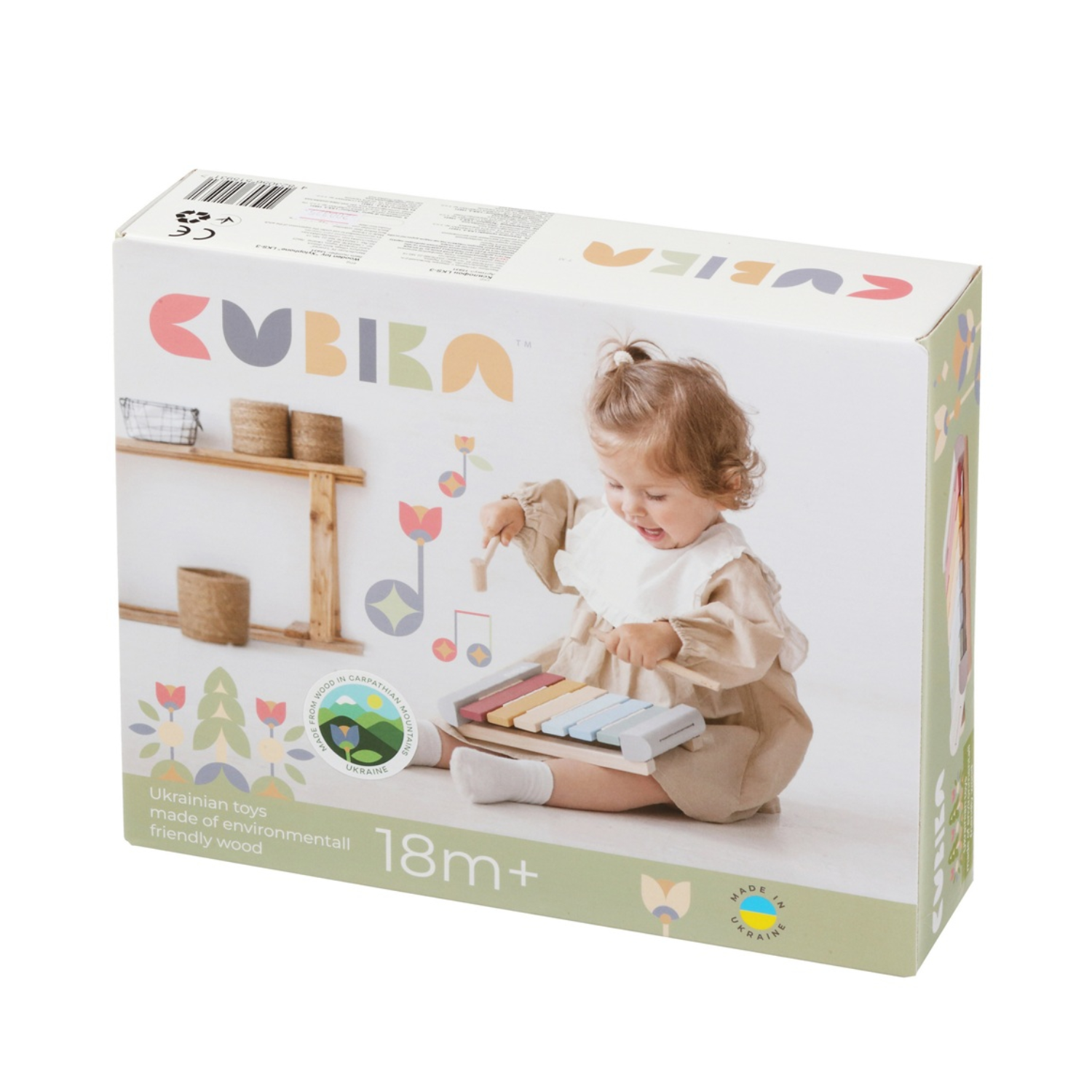 Cubika – Xilofon din lemn este o jucărie educativă ce transformă joaca într-o experiență muzicală plină de culoare. Cu cele 6 clapete viu colorate, xilofonul stimulează interesul copiilor pentru sunete și ritm, dezvoltând în același timp coordonarea, atenția și simțul muzical.