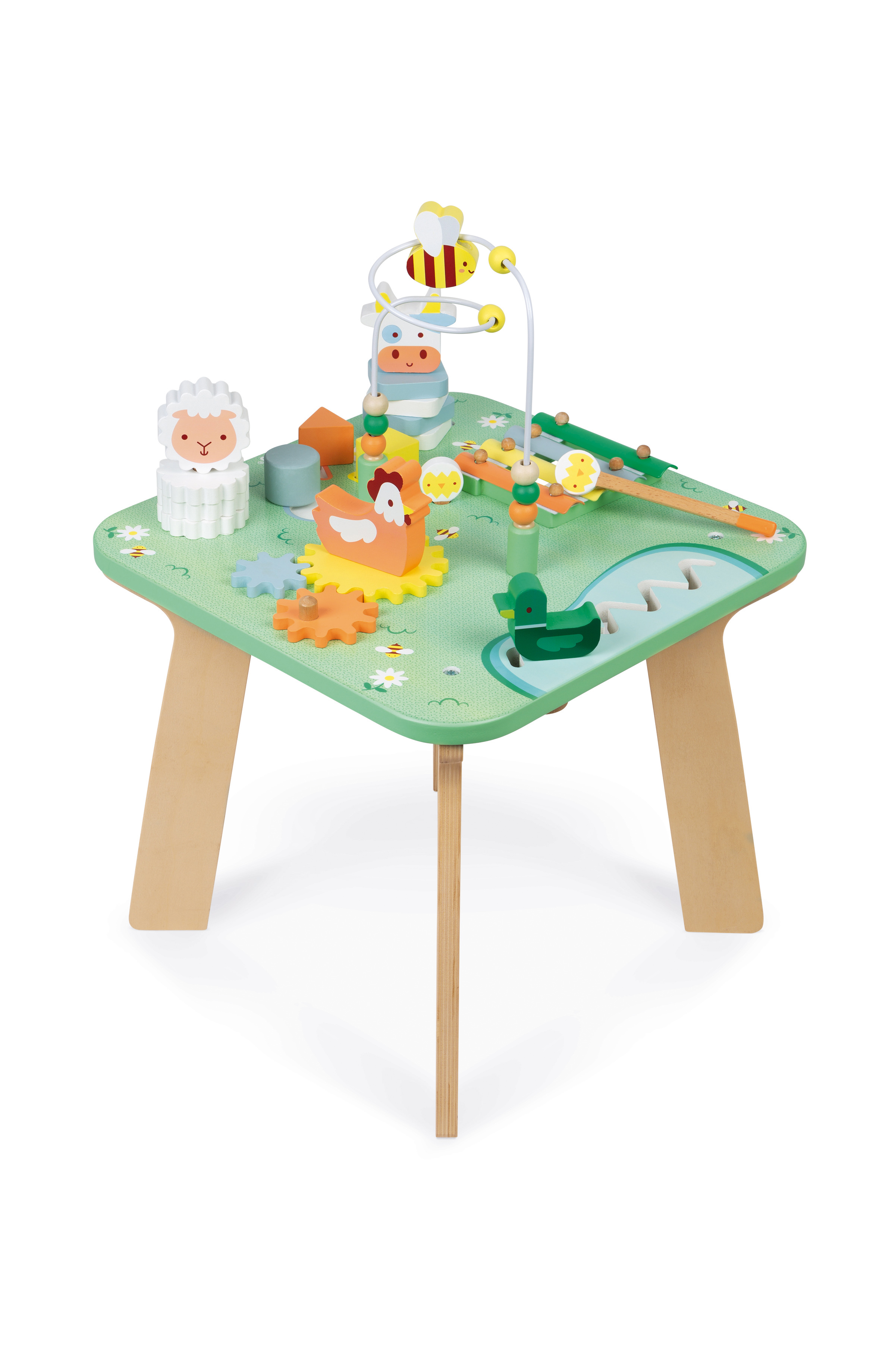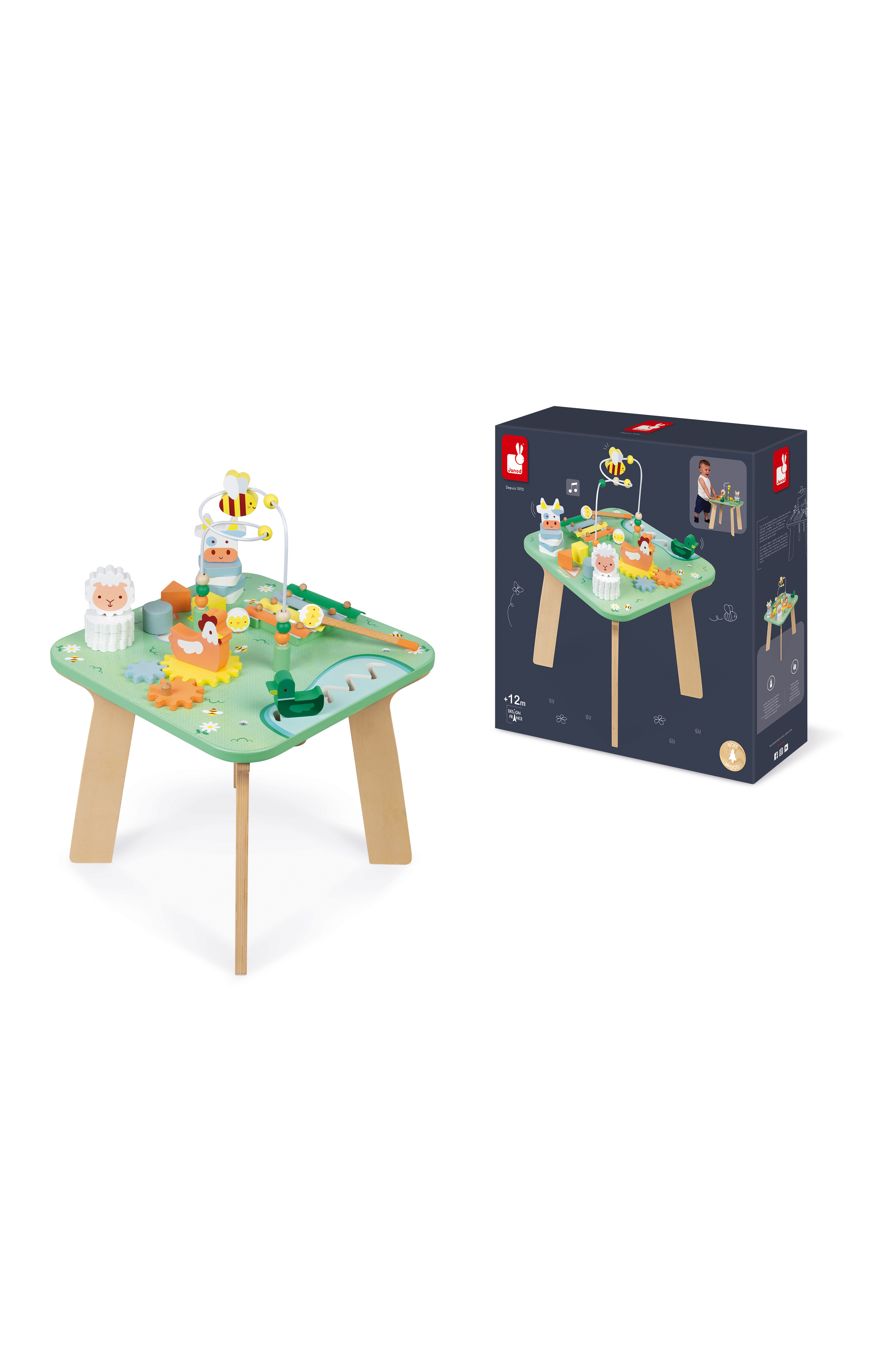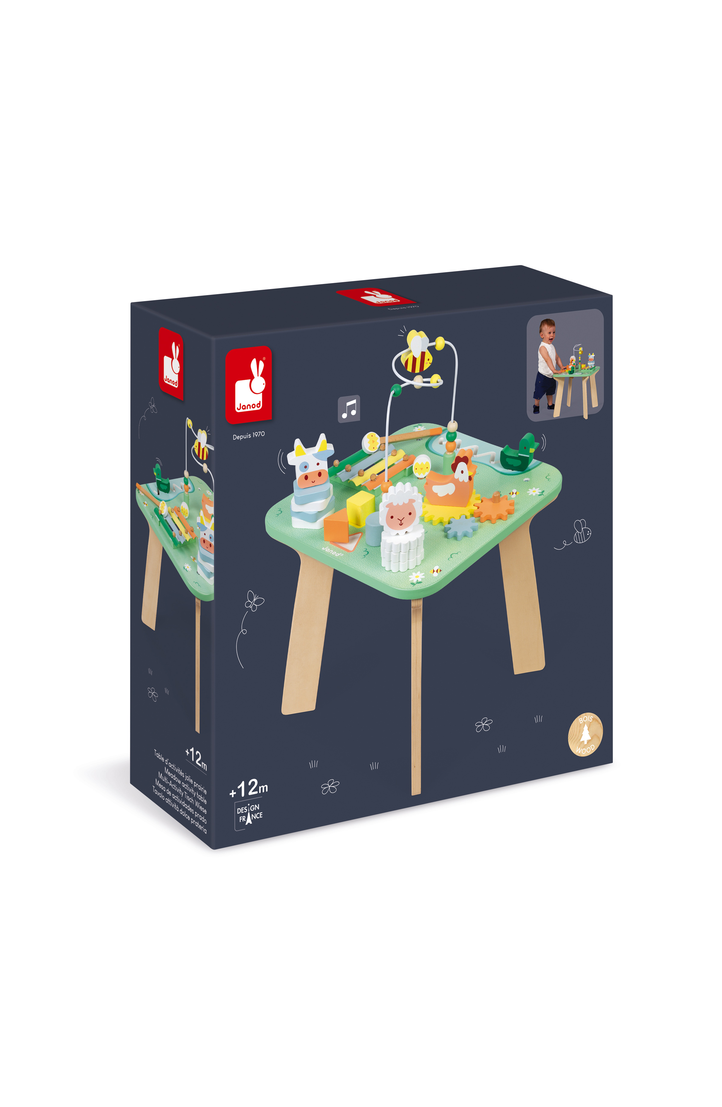 Descoperă lumea plină de culoare și sunete a fermei cu această măsuță interactivă din lemn de la Janod, concepută special pentru copiii de la 12 luni în sus. Cu un design vesel și materiale sigure, colorate cu vopsea pe bază de apă, această jucărie oferă o experiență educativă completă, ideală pentru dezvoltarea abilităților motorii, coordonării și curiozității naturale a celor mici.