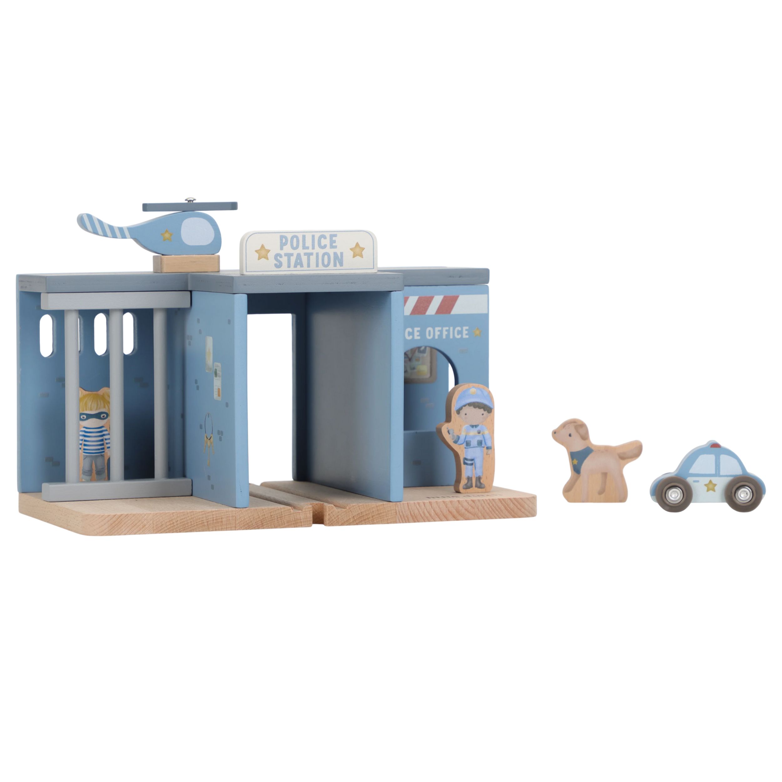 Hot prins! Aceasta statie de politie din lemn este locul ideal pentru cele mai captivante povesti de actiune. Setul include o masina de politie, un elicopter, un ofiter, un hot si chiar un caine politist gata de misiune.