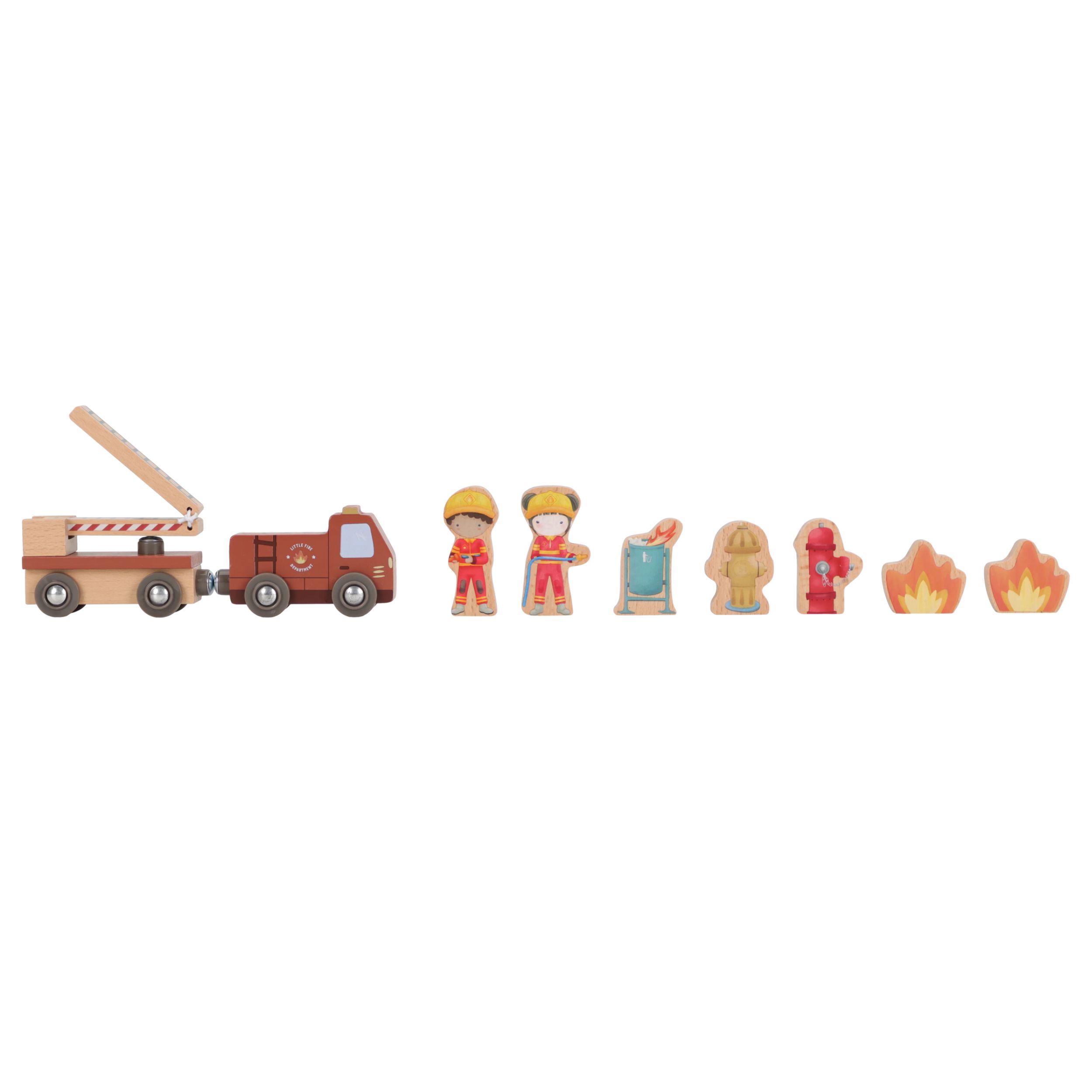 Sunetul alarmei se aude in tot orasul! Aceasta statie de pompieri din lemn este pregatita pentru cele mai palpitante misiuni de salvare. Copiii pot deschide usile garajului, pot aluneca pe bara de pompieri si pot sari direct in camionul de interventie pentru a stinge incendiul la timp.