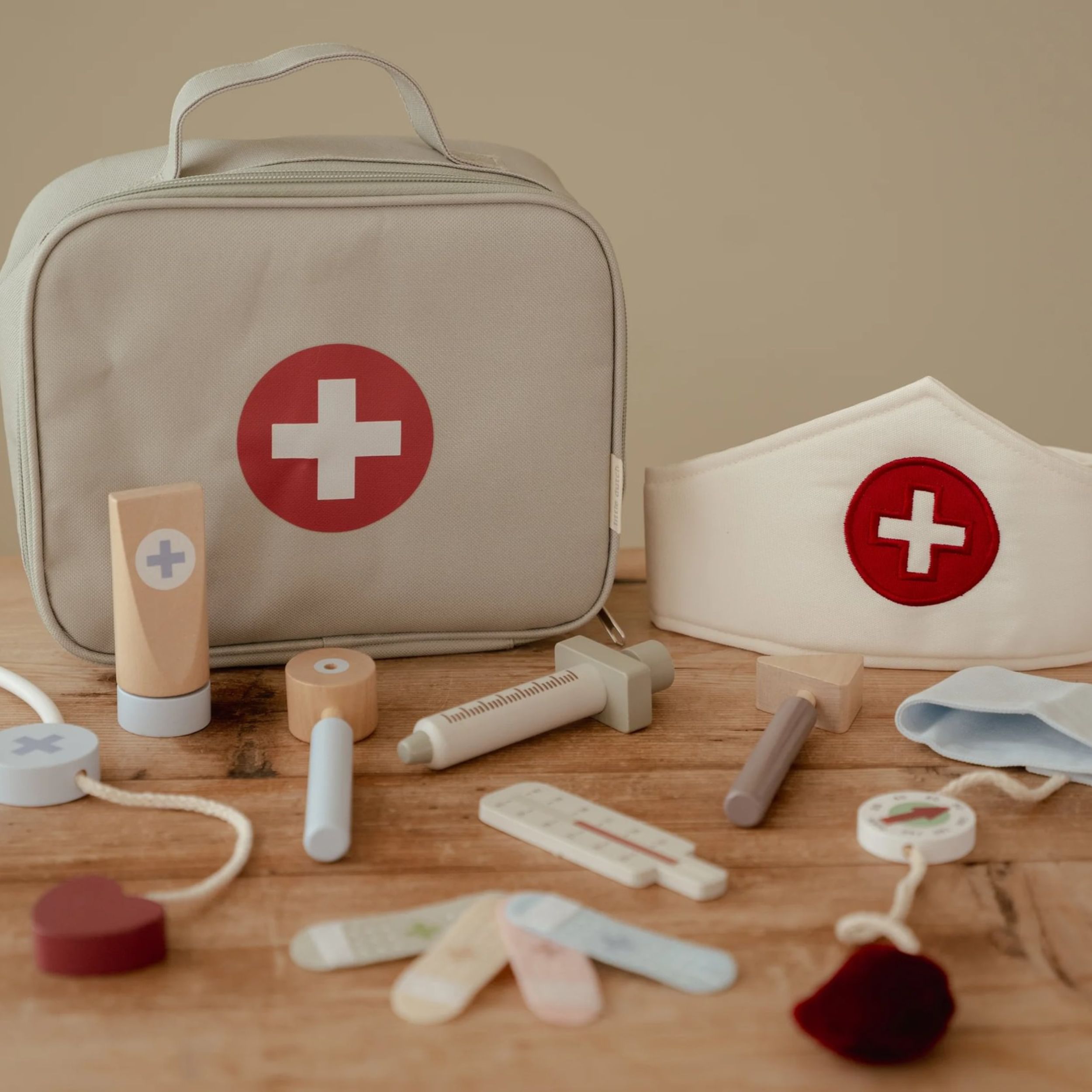 Domnule doctor, avem nevoie de tine! Cu aceasta trusa de doctor din lemn, copiii sunt pregatiti sa aiba grija de pacientii lor.