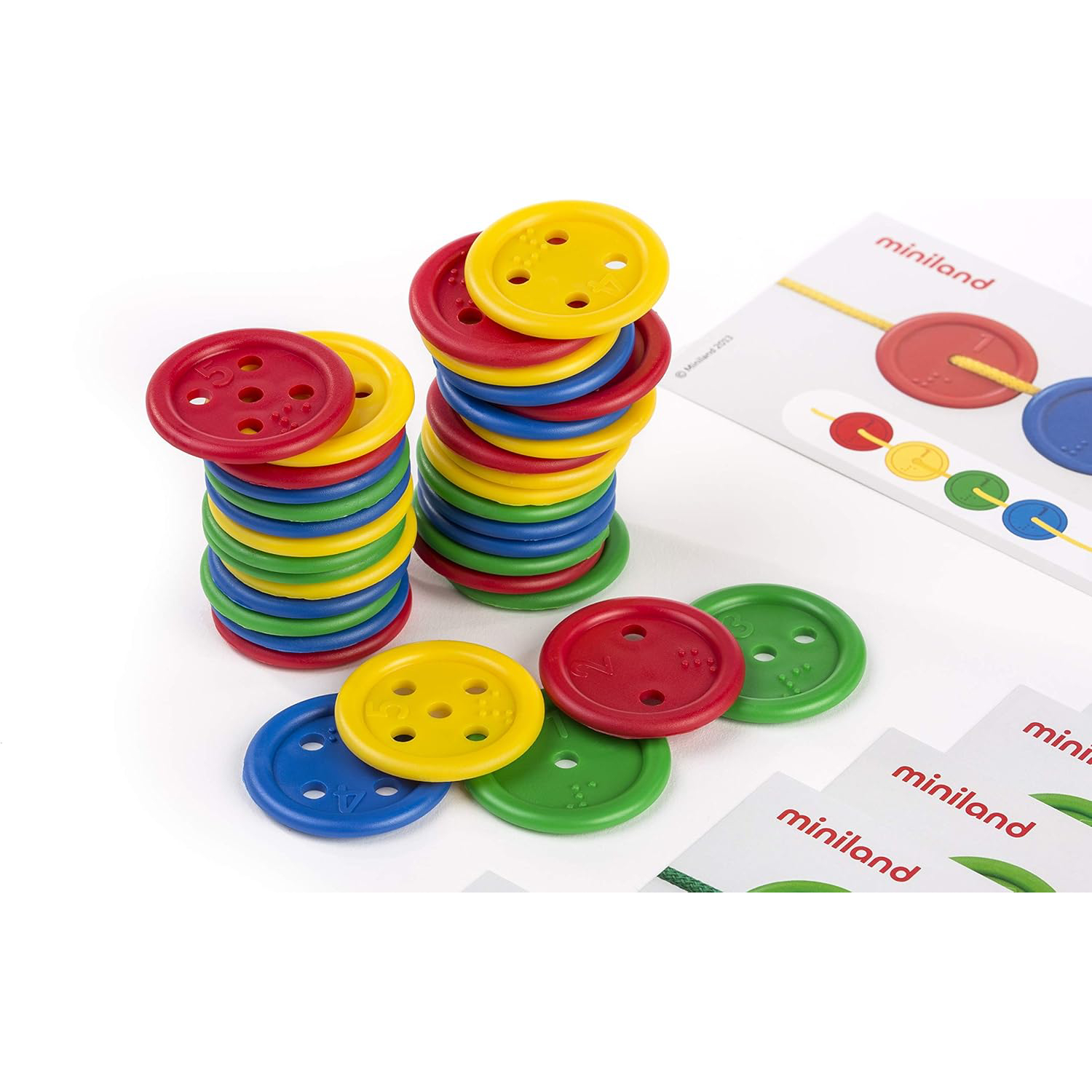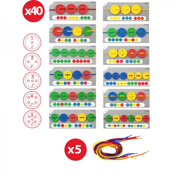 Nasturii au 1 pana la 5 gauri, au numere in relief de la 1 la 5, precum si reprezentarea numerelor in alfabetul Braille.