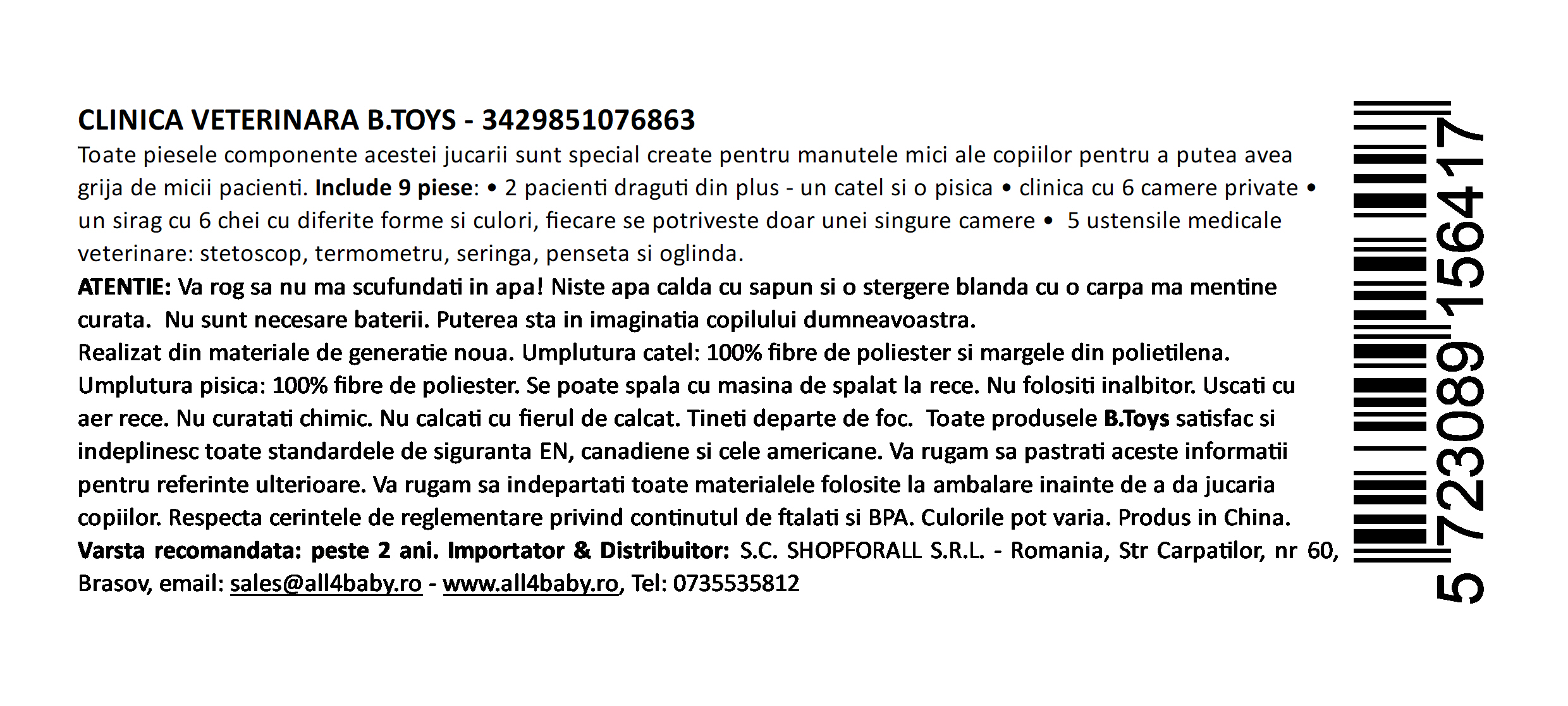 Clinica veterinara cu 6 cabinete, +2 ani, BToys