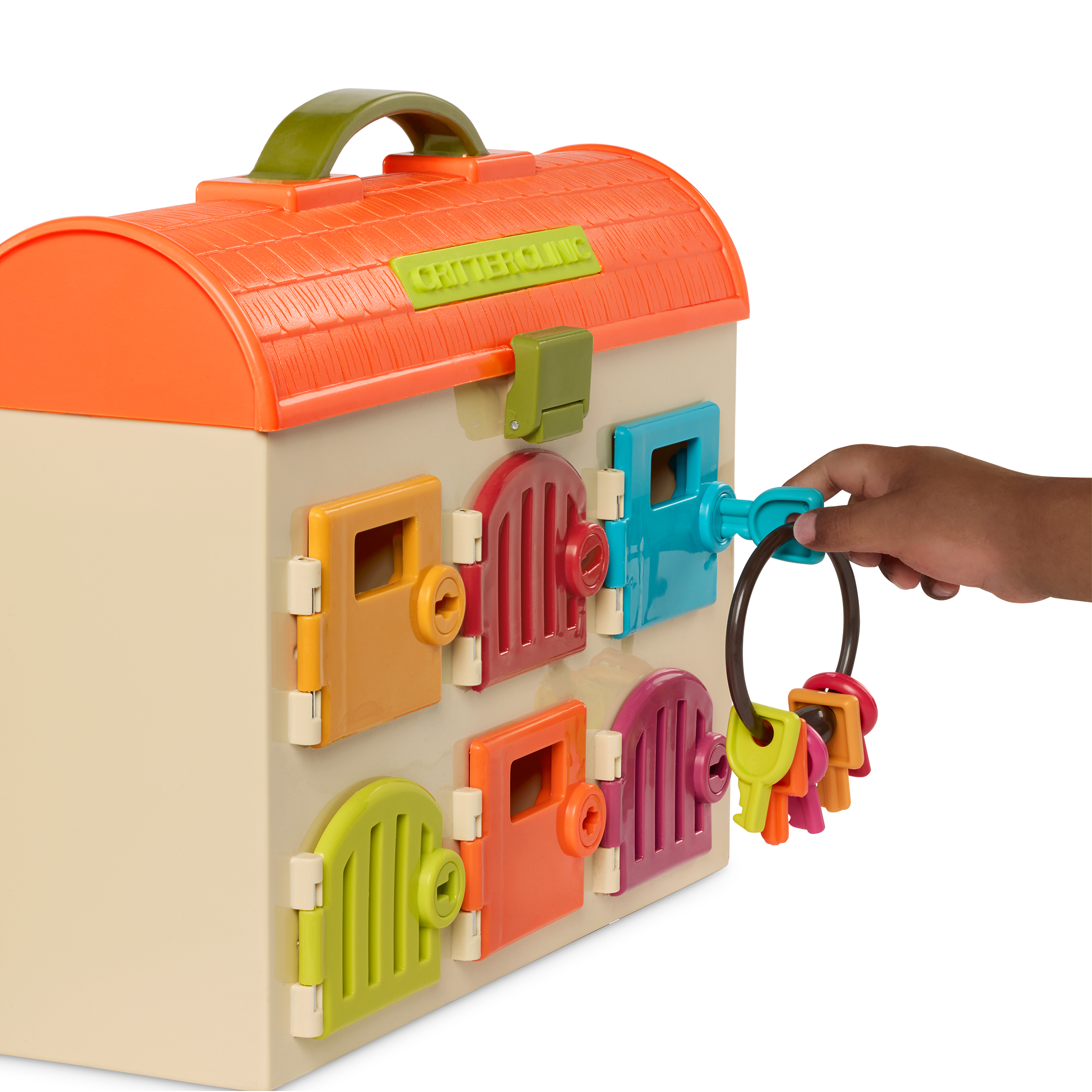 • Set cu 6 chei colorate, fiecare potrivită unei singure camere – ideal pentru jocuri de asociere.