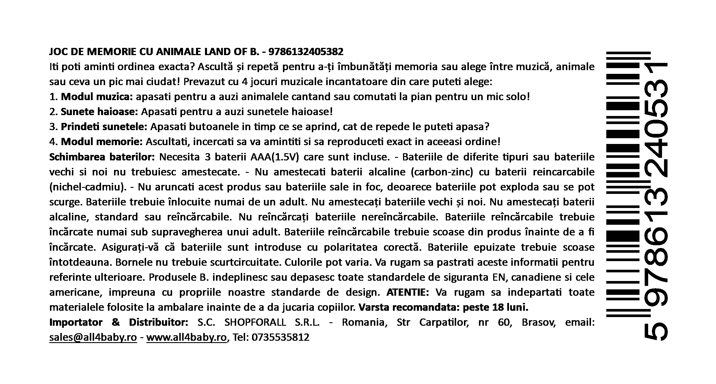 • vârsta recomandată: 18+ luni