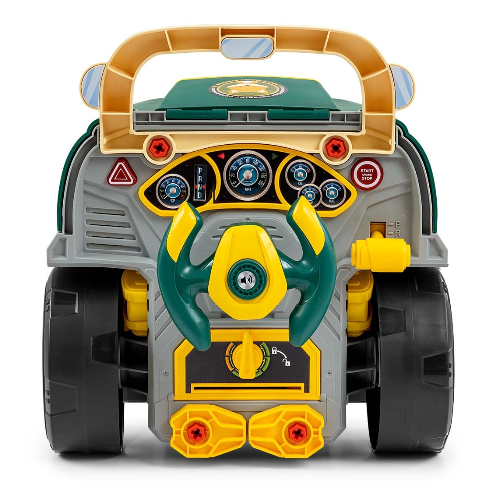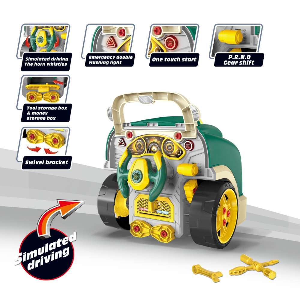 - Invatare prin actiune: copilul repara, schimba roti si strange suruburi, invatand bazele mecanicii.