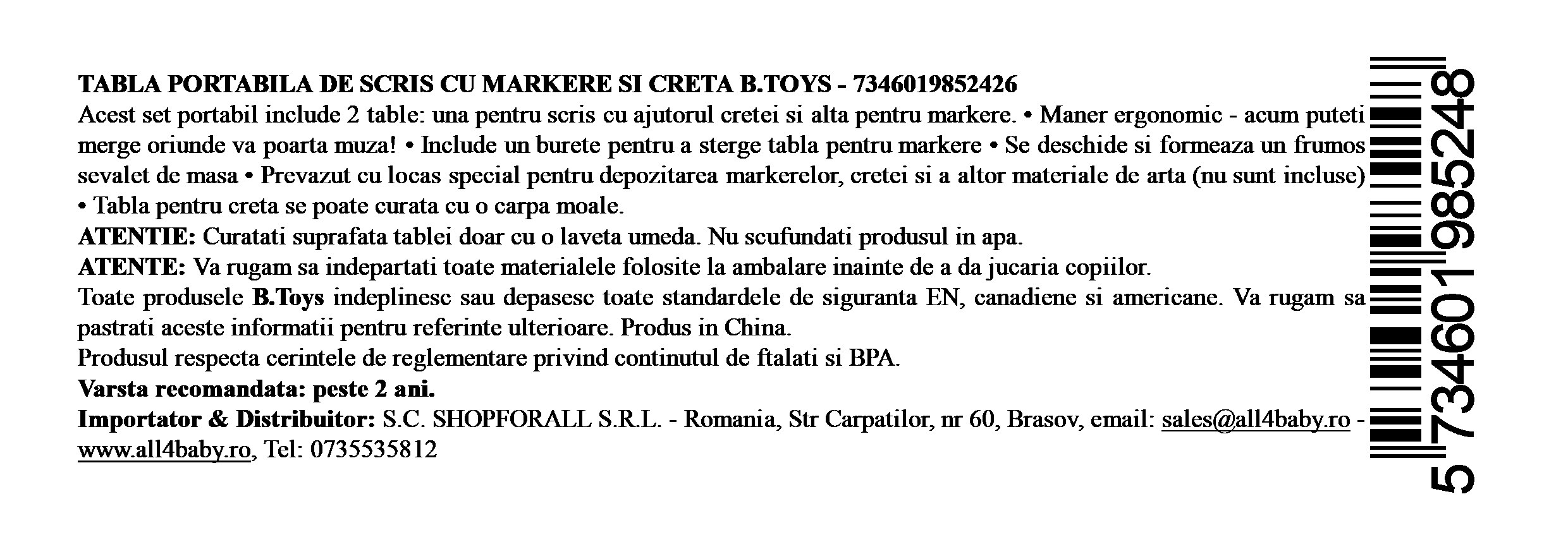 | Varsta | 2 ani+ |
