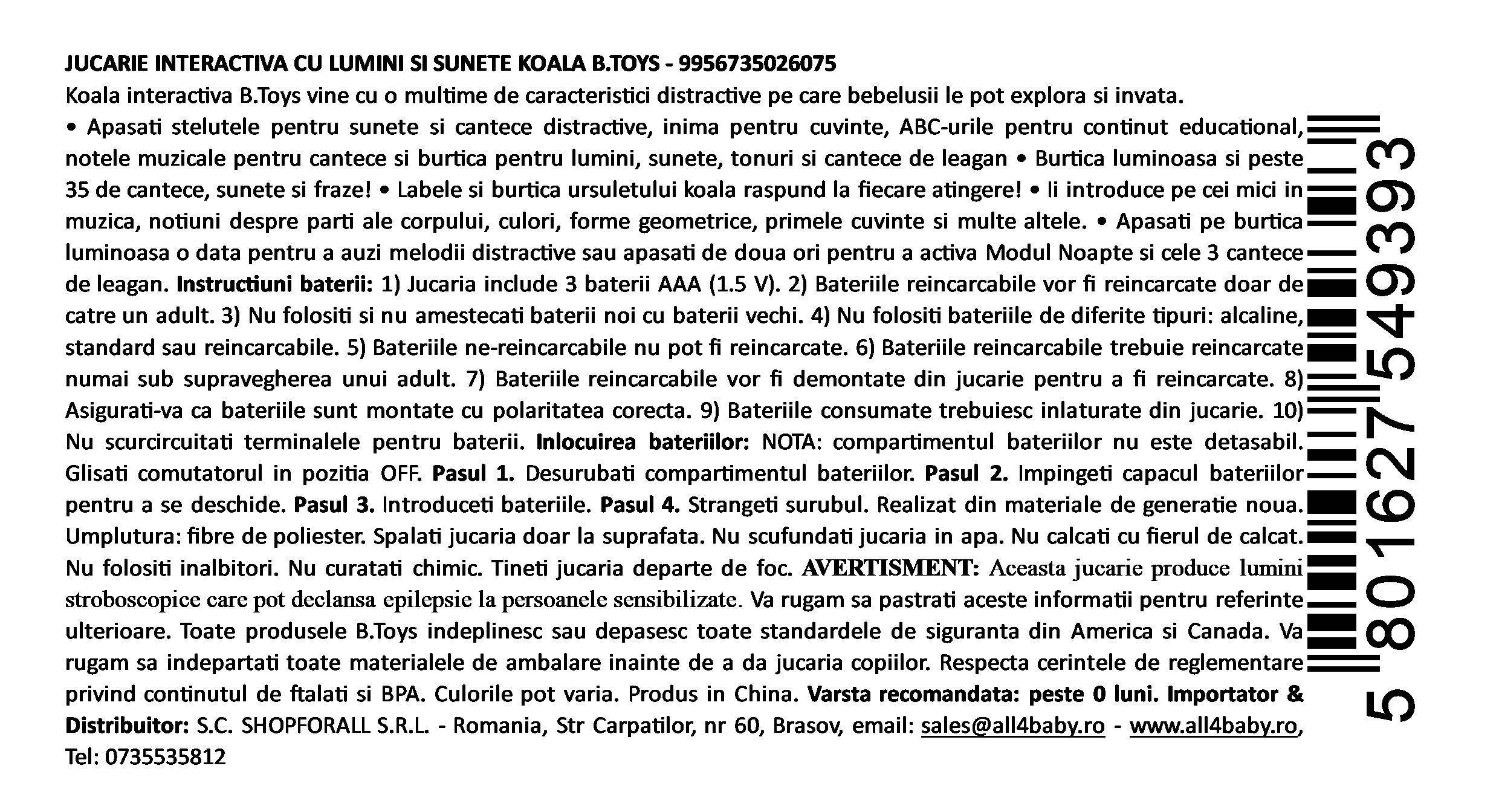 Koala Kiki este o jucărie interactivă care combină muzica, sunetele și lumina pentru a stimula curiozitatea și dezvoltarea bebelușilor. Cu peste 35 de cântece, sunete și fraze, aceasta oferă ore întregi de joacă educativă și distractivă.