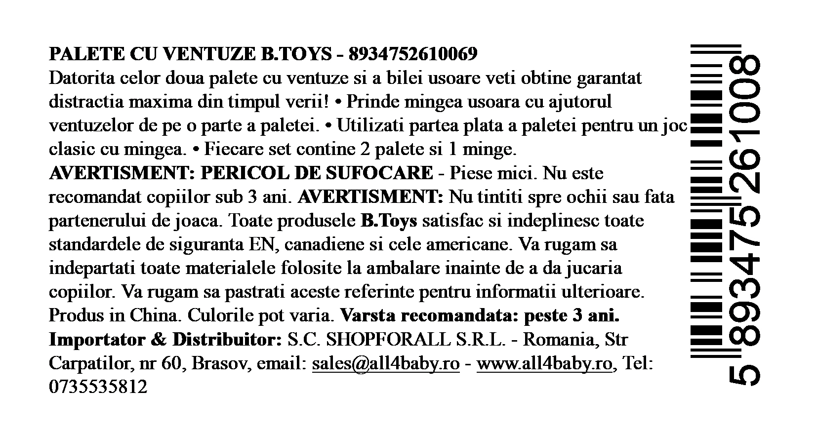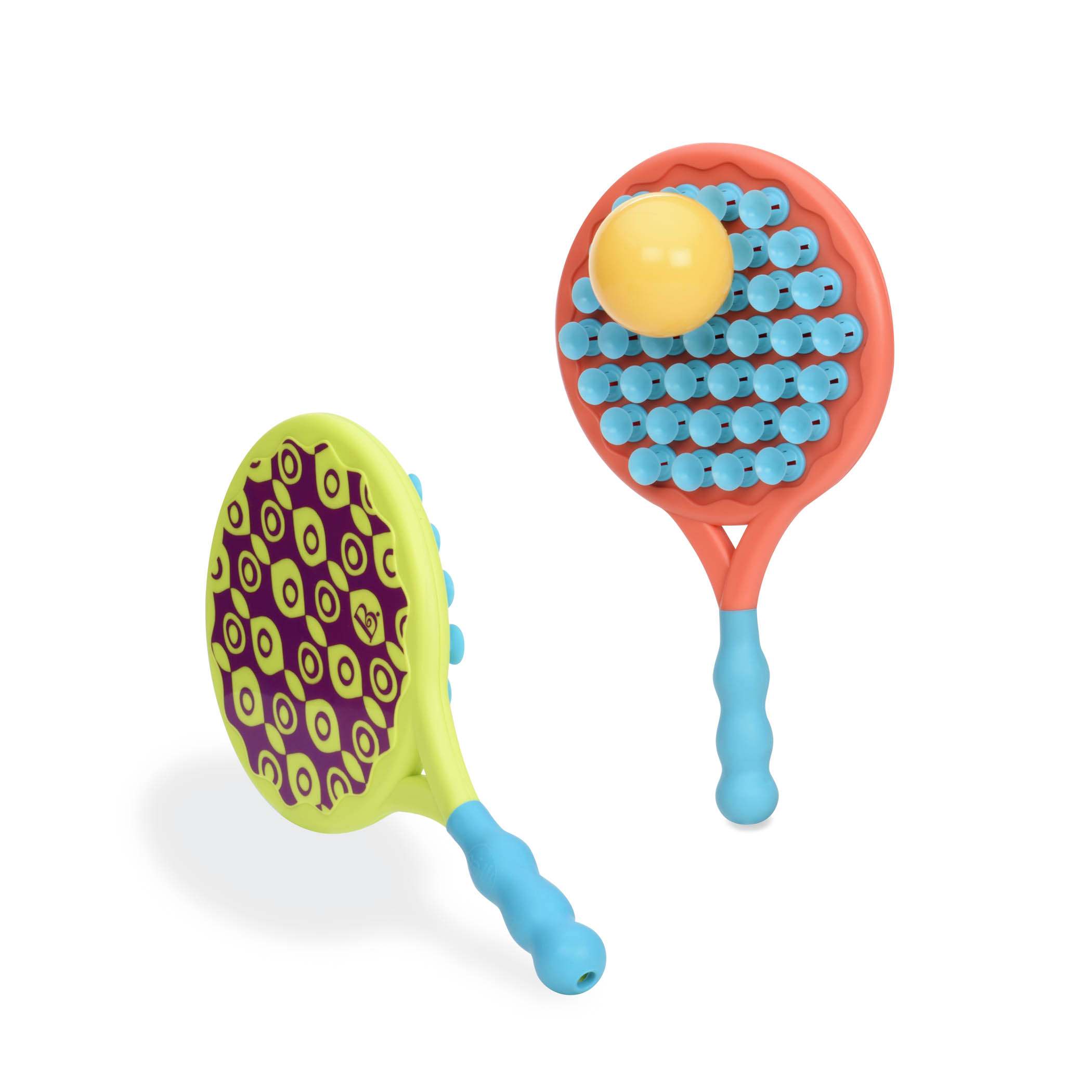 Paletele cu ventuze B.Toys sunt ideale pentru jocuri interactive în aer liber, oferind două moduri diferite de utilizare pentru distracție maximă. Datorită mingii ușoare și designului ergonomic, copiii se pot bucura de activități dinamice care stimulează coordonarea și mișcarea.