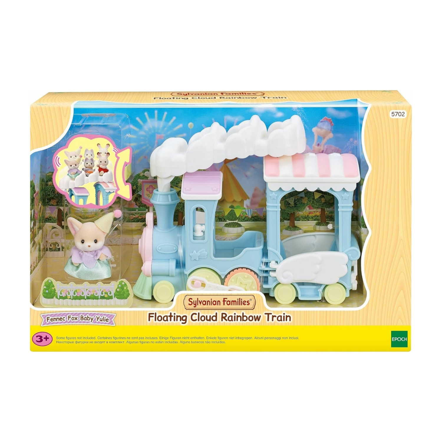Trenuletul Curcubeu Sylvanian Families aduce bucurie si miscare in lumea figurinelor! Setul include un tren de parada adorabil si puiul de Vulpe Fennec Yulie, recunoscut pentru urechile sale lungi si simpatice. Norul de fum din cos se ridica si coboara in timp ce trenul se misca, iar micutii pasageri pot fi asezati pe scaunul soferului, in norul pufos sau in vagonul de pasageri.