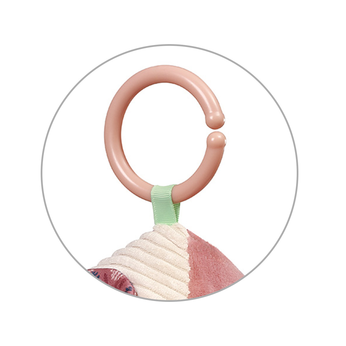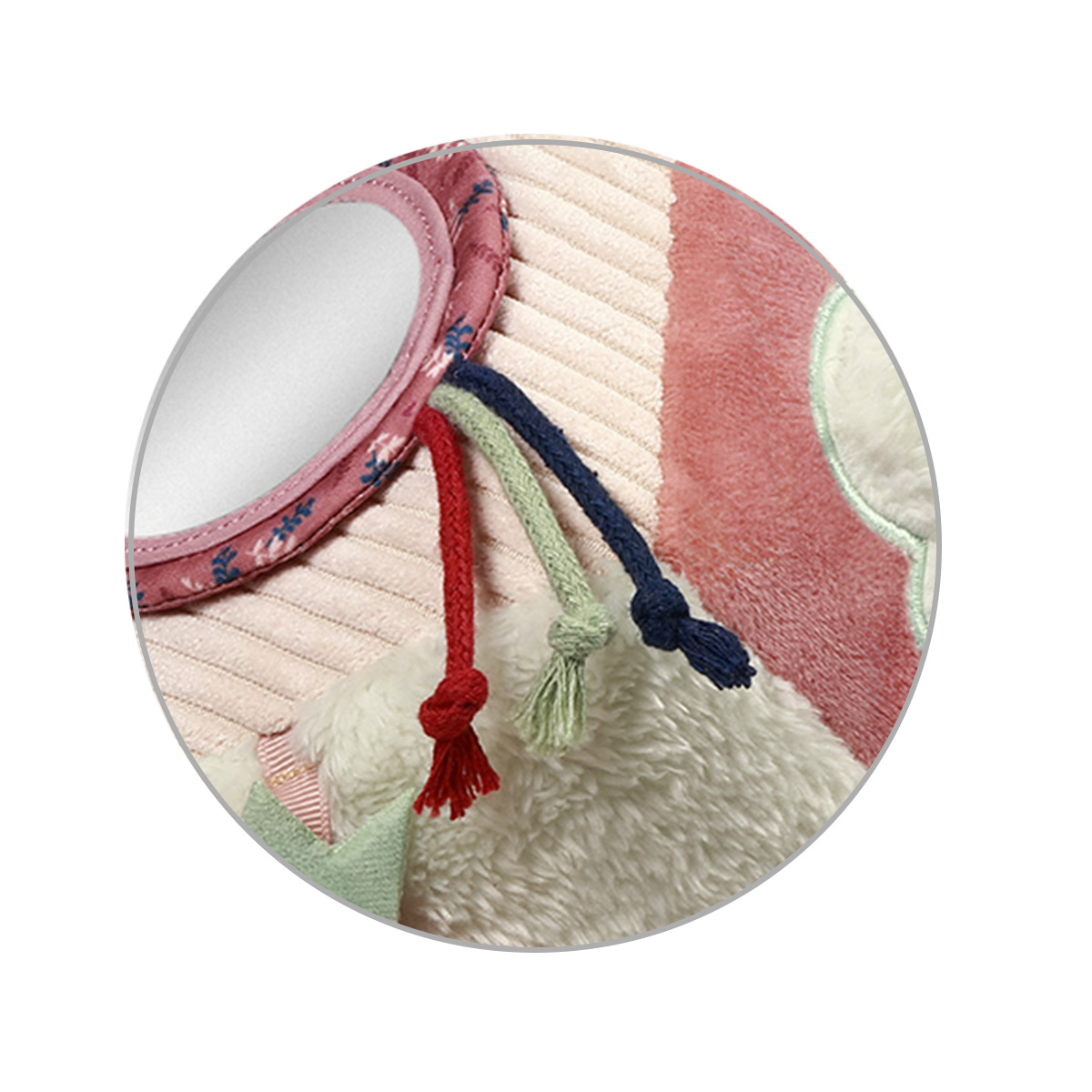Materialele moi și texturile variate stimulează simțul tactil, iar culorile și formele atractive captează atenția copilului. Elementele interactive precum oglinda, zornăitoarea și materialele fosnitoare transformă joaca într-o experiență captivantă, iar inelul de dentiție flexibil oferă confort în perioada erupției dentare.