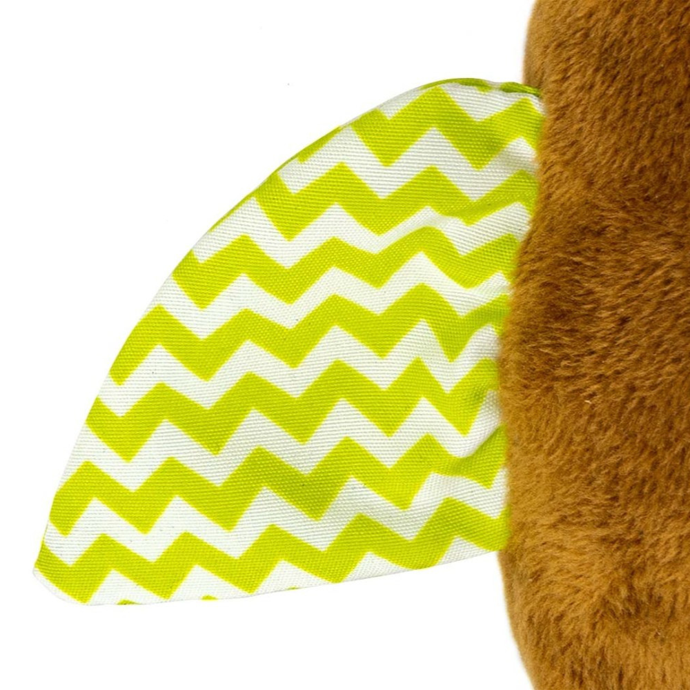 - Materiale: textile moi cu texturi variate, clopoțel integrat, carabină din plastic