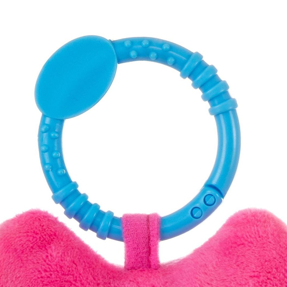 - Materiale: textile moi cu texturi variate, clopoțel integrat, carabină din plastic